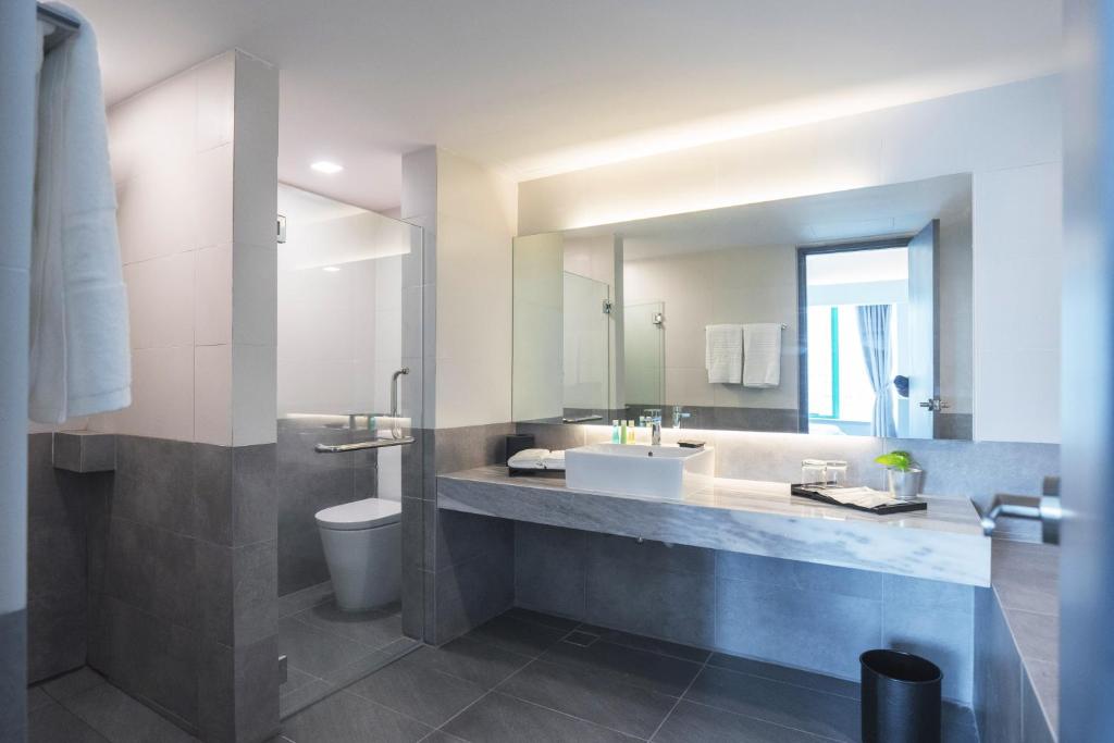 내 숙박은 처음에 좀 혼란스러웠습니다. 로비를 찾기가 조금 힘들었고 출입할 때는 키 카드와 버튼을 눌러야 했기 때문입니다. 하지만 다른 여행자들도 그걸 알아내려고 하는 걸 보니 저만 그런 게 아니라는 걸 알게 되어 조금 웃음이 났습니다. 놀랍게도, 저는 무료로 더 좋은 방으로 업그레이드되었습니다. 정말 친절한 제스처였습니다! 혼자 여행하는 저는 추가 침대가 필요하지 않았지만, 그 제스처 덕분에 제 숙박이 더욱 특별하게 느껴졌습니다. 방 자체는 티 없이 깨끗했고 wonderful한 향기가 나는 부드럽고 매력적인 향이었습니다. 인테리어 디자인은 간단하면서도 세련되어, 공간이 아늑하고 스타일리시하게 느껴지는 세심한 예술적 터치가 있었습니다. 때때로 복도에서 문이 열리는 소리나 바깥에서의 교통 소음이 들리기도 하지만, 전반적인 분위기는 조용하고 차분하여 탐험 후의 휴식에 완벽한 환경이었습니다. 이 호텔을 특별하게 만드는 것은 위치입니다. CIQ와 시티 스퀘어까지는 짧은 도보 거리이며, 걸어서 5-10분 거리에 여러 은행과 작은 지역 상점들이 있어 교통 수단이 없이 탐험하거나 간단한 심부름을 하기에는 정말 편리합니다. 호텔은 규모가 좀 작은 편(약 20층)이라 많은 편의 시설을 제공하지는 않지만, 활동적인 것을 좋아하는 분들을 위한 체육관과 연회장이 있습니다. 약간 더 비싸긴 하지만, 저는 이 호텔을 정말 추천합니다—특히 혼자 여행하는 분들에게요. 청결, 편안함, 그리고 세심한 배려가 정말로 저의 숙박을 즐겁게 만들었습니다.