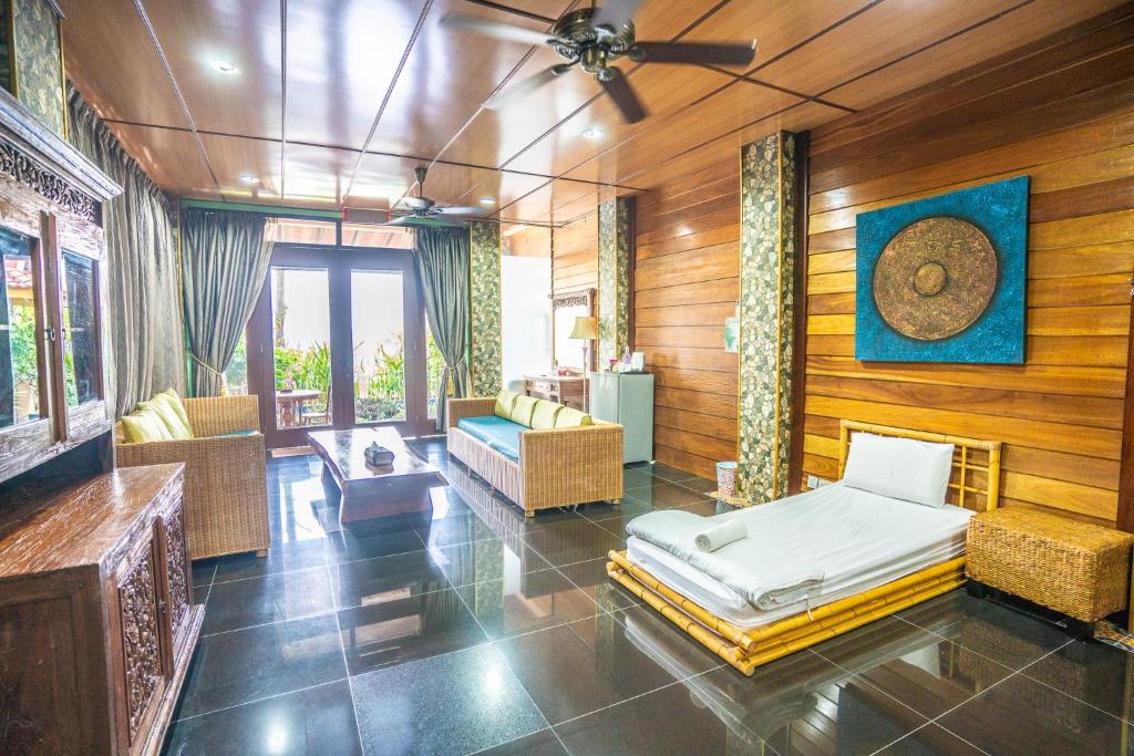 The Deluxe Room Sea View, with its 52 square meters of space and a choice of 1 Single Bed or 1 King Bed, provides a comfortable and relaxing stay. Families will love the spaciousness of the Family Suite and Family Villa, both offering 90 square meters of space. The Family Villa comes with either 1 King Bed and 1 King Bed and 1 King Bed or 1 Single Bed and 1 King Bed, ensuring ample room for everyone.