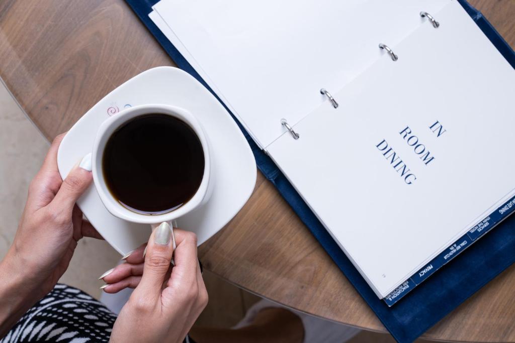 Papildus viesnīcas restorānam, Marina Hotel Kuwait piedāvā arī 24 stundu numura apkalpošanu, ļaujot jums izbaudīt gardus ēdienus savā istabā jebkurā laikā. Viesnīcas kafejnīca ir lieliska vieta, kur atpūsties un izbaudīt kafiju vai vieglus uzkodas, savukārt koplietošanas virtuve nodrošina iespēju viesiem sagatavot ēdienus pašiem, ja viņi vēlas izbaudīt mājas sajūtu. Ar ikdienas uzkopšanu viesi var būt droši, ka viņu ēdināšanas pieredze būs ne tikai garšīga, bet arī patīkama un komfortabla.