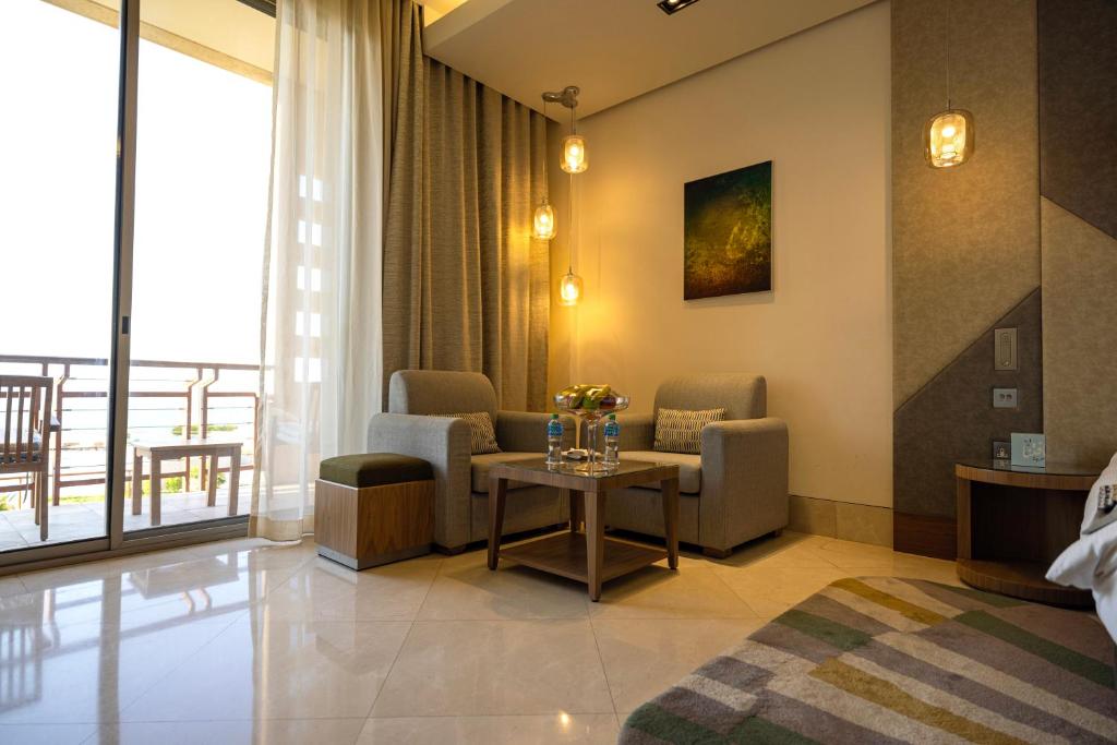 Turklāt katrs numurs piedāvā mini bāru un ledusskapi, kas ir lieliski piemēroti, lai uzglabātu dzērienus un uzkodas. Viesi var arī pagatavot kafiju vai tēju, izmantojot kafijas/tējas automātu, un izbaudīt bezmaksas pudelēs iepildītu ūdeni. Numuri ir aprīkoti ar atsevišķu dzīvojamo istabu, kas nodrošina papildu telpu un komfortu. Viesi var relaksēties uz balkona vai terases, baudot skaistus skatus, un izjust mājīgumu ar augstas kvalitātes veļu un dvieļiem. Papildus tam, vannas istabās ir pieejami higiēnas piederumi, kā arī melnās aizkaru aizkari, kas nodrošina privātumu un ērtu naktsmieru.