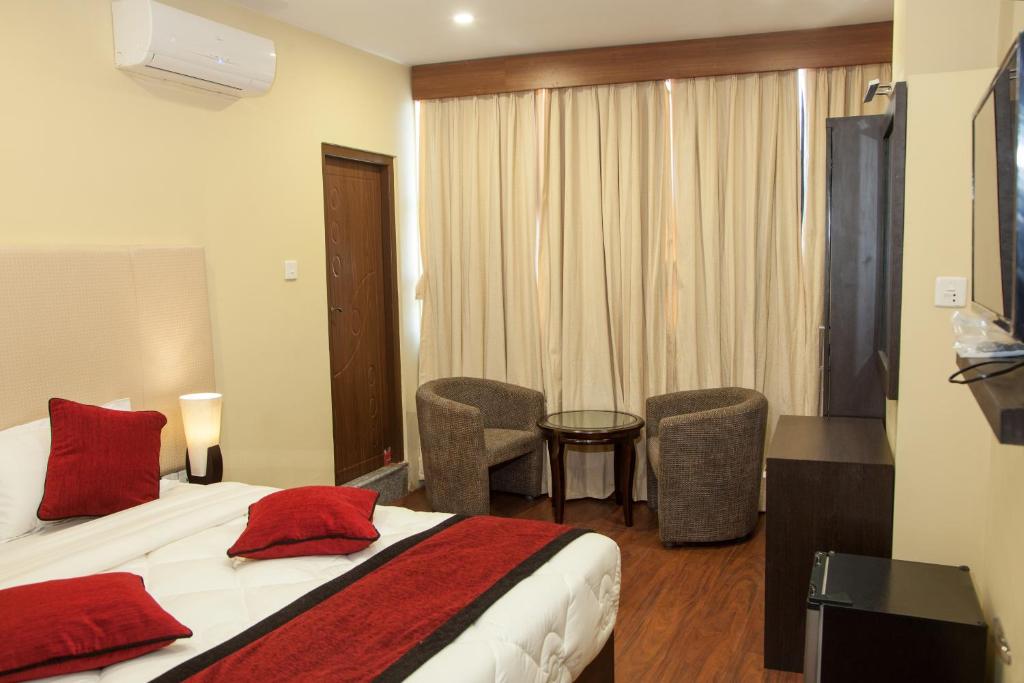 This hotel has a delicious breakfast on the rooftop with Nepali style food. The room is clean and comfortable. The location is excellent and walkable from the airport if your luggage is not too heavy. Or you can ask for the hotel to pick you up from the airport.