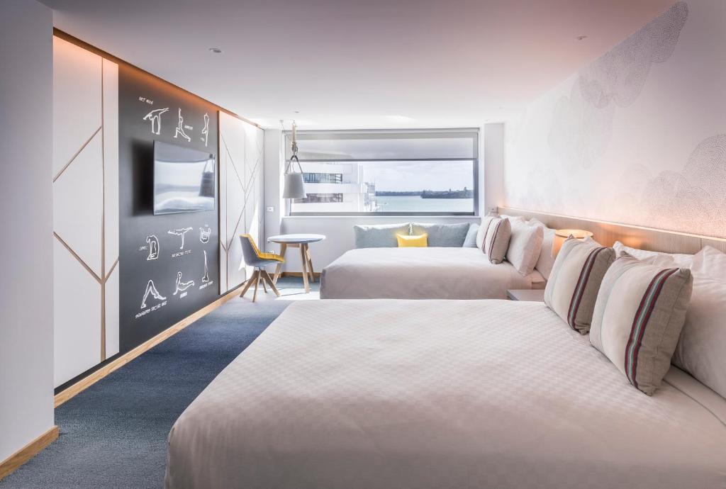 Velkommen til M Social Auckland, et stilig 4,5-stjerners hotell som ligger bare 1,1 km fra byens pulserende sentrum. Åpnet i 2017, kombinerer dette moderne hotellet en unik design med førsteklasses fasiliteter, perfekt for både forretningsreisende og familier på ferie. Med en strategisk beliggenhet, tar det bare 35 minutter å nå Auckland lufthavn, noe som gjør det til et ideelt valg for reisende som ønsker enkel tilgang til både byens attraksjoner og transportmuligheter.