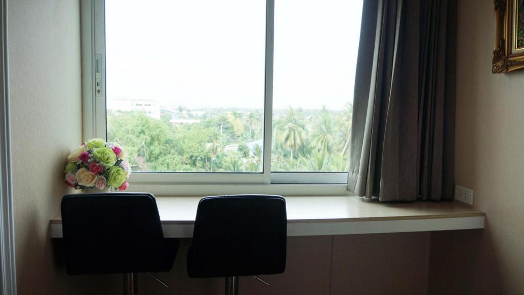 The hotel is located at a good place, serves good thai food, and has very helpful staff. The rooms are clean but smaller than normal for similarly priced hotels. In-room furniture and facilities are very ordinary. There is a metal bed and a small centre table, not even a decent chair to sit. Good for solo travellers looking to spend the nights only.