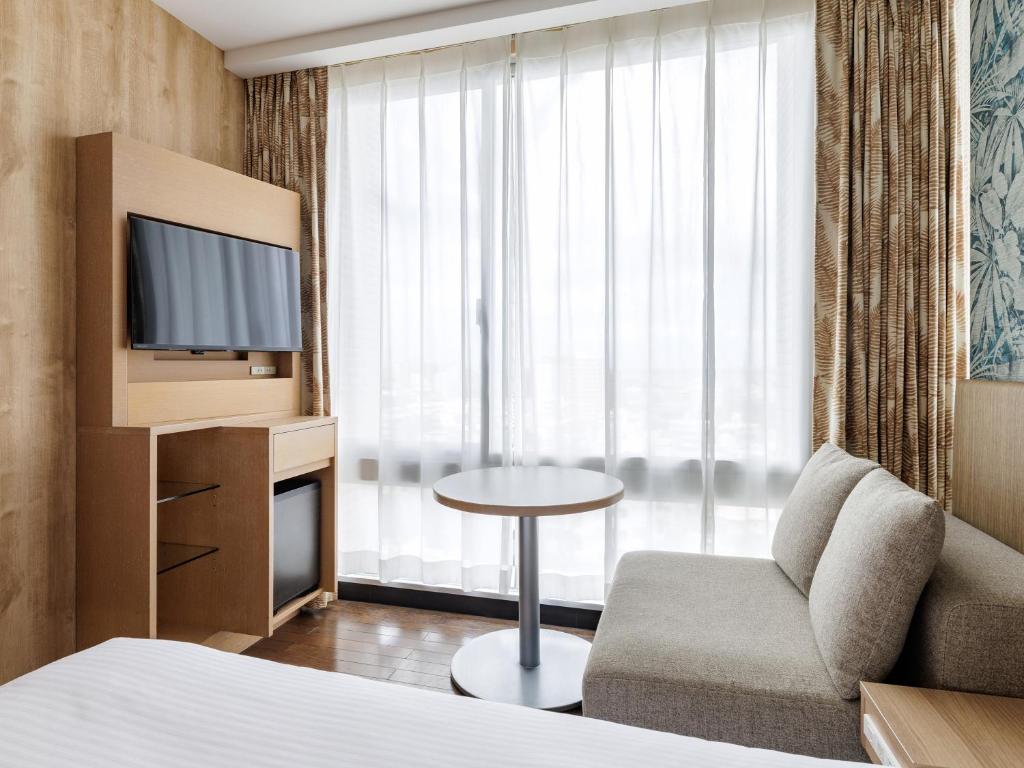 After my business trip, I stayed privately for a few nights. I was in a single room on the top floor, which was indeed a bit cramped, but the absence of a wall-mounted TV and desk did not create a sense of pressure. Most importantly, there was a large window with a single armchair and a round table by the window, where I could spend a long time gazing at the distant sea, watching Netflix, or using my laptop. Although cleaning is not done every day, they kept the room clean, and towels and pajamas were replaced daily. Many of the staff at the front desk were foreigners, but I had no communication problems with anyone, and they seemed to provide courteous service thoroughly. The location is good and convenient for going out to Kokusai Street. There are convenience stores nearby, as well as shabu-shabu restaurants and izakayas, so I had no trouble finding places to eat. I liked it so much that I extended my stay. The next time I come to Okinawa, I would like to request a high floor again.