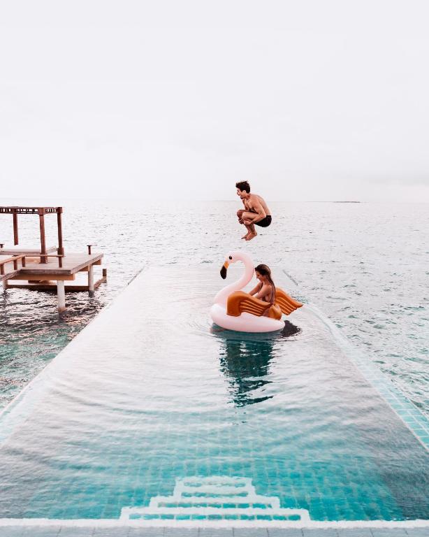 We stayed for three nights in a water villa for our honeymoon trip. Water Villa 5/5: The water villa here is fantastic, with a big private pool and an amazing ocean view. The villa is also very spacious, with good amenities. The villas also have an additional second floor, providing fantastic scenery, dining options, and relaxing sunbathing. Overall staying at the water villa here was a great choice and added a unique charm and romance to our honeymoon. We also thank the staff for providing the complementary honeymoon benefits in the villa during check-in! We highly recommend the stay at the Water Villa at this resort. Staff 4/5: The staff is friendly and helpful. Everyone we encountered was courteous and attentive. We especially thank Layla for her exceptional assistance and attention during our dining. Main beach island 4.5/5: The water villas and the beach are not connected by land; there is a complementary ferry between the water villas and the beach every hour. It was not a problem for us; however, it might be a deciding factor for other people. The main beach island is beautiful, with white sand beaches, trees, and colorful birds. I got many good places to capture amazing photos of my wife. We would remember the Stingray and the Bird feeding experiences, which happen daily on the main beach island. The island also looks stunning at night because of the beautiful light decorations. I captured several photos and dance videos of my wife at night, which were excellent. Food 3.5/5: We are vegetarians. The resort had excellent options for vegetarian food; they have a separate vegetarian menu with several good options. Overall the food and dining experience was above average. The Indian vegetarian food lacked its authentic taste; this is one thing the resort needs to improve. There were ample options for drinks, although fresh fruit juices were not included in the dining plus package, which was a turn-off. The following aspect needs to *seriously* improve: Co