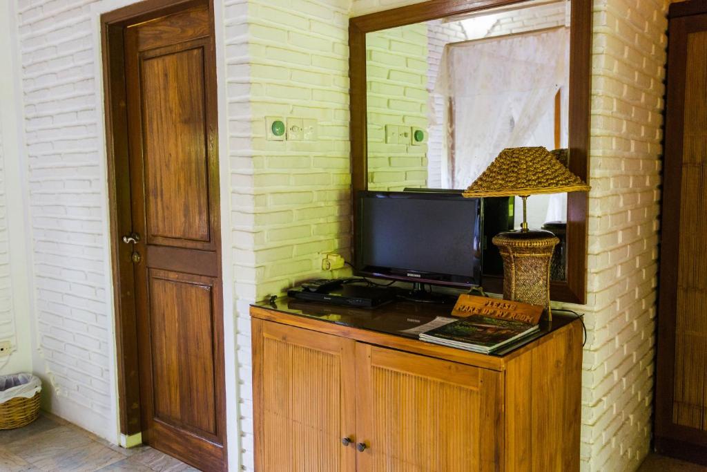 Mooi ingerichte kamer met donkerhouten rotan meubels en prachtige veranda met fauteuils met salontafel en eettafeltje met stoelen aan een vijver en tuin met planten (waardoor privacy). Bij mijn kamer (3) zat wel een zoemend kastje, wat de rust wat verstoorde als je daar gevoelig voor bent. ‘ s avonds op veranda muggen, overdag niet. Een aantal dingen in de kamer waren wat versleten of bevlekt, zoals (achterkant) gordijnen. Badkamer praktisch ingedeeld, goede spiegel en licht voor makeup, douchen in bad met niet in hoogte verstelbare douchekop en warm water. Bad heeft kalkaanslag. Door die vlekken en omdat het bij aankomst (later niet meer) wat vochtig/muf rook, lijkt het niet super schoon, maar op zich zijn vlekken natuurlijk niet zozeer vies. Goede airco en een plafondventilator, wat prettig is voor ‘s nachts. Het ligt aan de doorgaande weg, dichtbij strand en restaurants met gratis parkeergelegenheid, maar toch rustig. Er is een receptie, zwembad met zitjes waar je ook ‘s avonds in kunt en op zich niet zo gezellig maar functioneel restaurant, er zijn verschillende ontbijtkeuzes en dit wordt naar je veranda gebracht 🙂. Ik vond het ontbijt met de croissants voor de prijs wat te karig. Het personeel is vriendelijk, niet iedereen spreekt even goed Engels, maar de grootste troef is wel Putu die als een ware gastvrouw even kwam kijken bij iedereen (volgens mij dagelijks) of alles naar wens was en of ze nog ergens bij kon helpen en zeer goed Engels spreekt en doortastend is en dingen goed en geduldig regelt (zelfs als je er maar een nacht slaapt en het probleem dat je hebt zich pas aandient als je er niet meer bent 😉). Niks was teveel om me uit de brand te helpen.