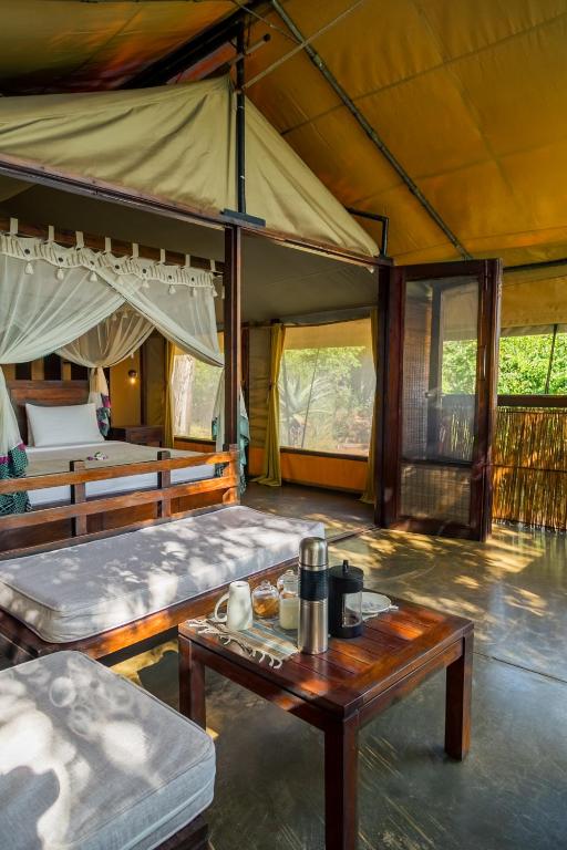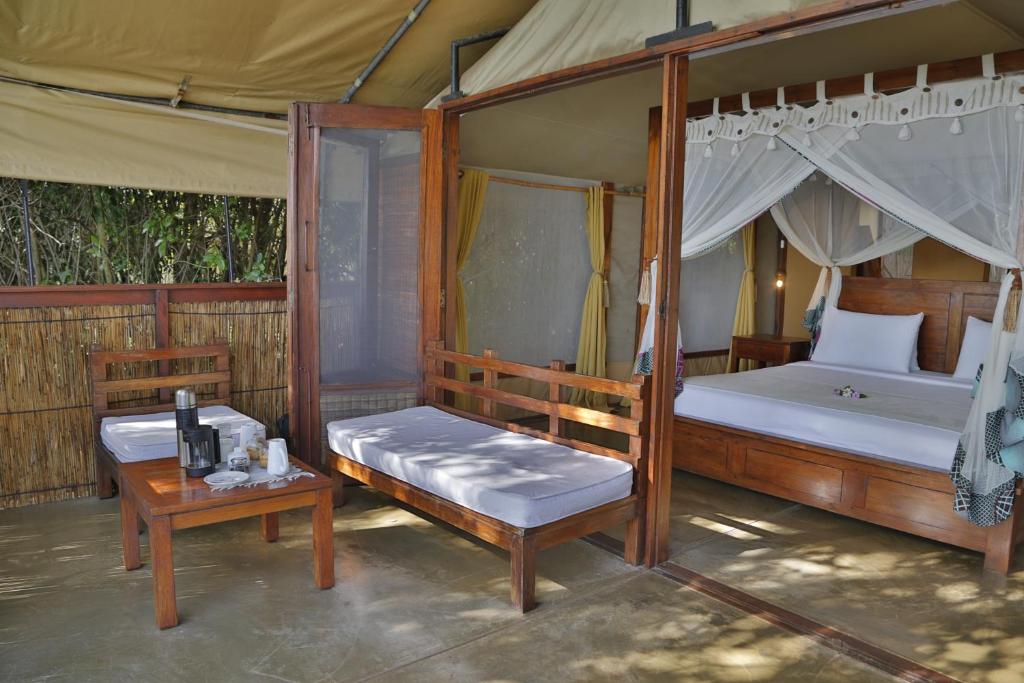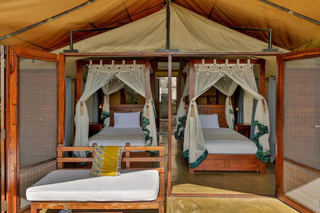 Naara Eco Lodge & Spa biedt een unieke ervaring met een scala aan zorgvuldig ontworpen accommodaties die perfect zijn voor natuurliefhebbers en avonturiers. De Deluxe Villa is een oase van rust, ideaal voor diegenen die op zoek zijn naar privacy en luxe in een natuurlijke omgeving. Voor een onvergetelijke ervaring aan het water zijn de Luxury Double Tent met Lake View en de Luxury Twin Tent met Lake View perfect, beide met een royale ruimte van 60 vierkante meter. Deze tenten bieden een adembenemend uitzicht op het meer en creëren een harmonieuze verbinding met de omliggende natuur, waardoor gasten zich volledig kunnen onderdompelen in de serene schoonheid van Chidenguele.