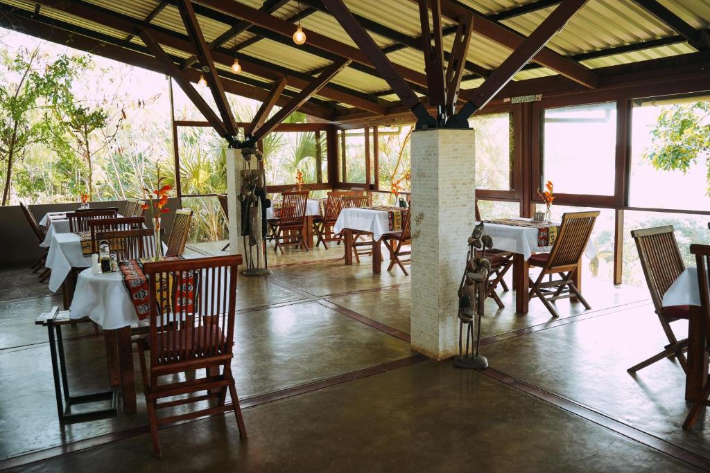 Bij Naara Eco Lodge & Spa in Chidenguele, Mozambique, worden gasten uitgenodigd om te genieten van een onvergetelijke culinaire ervaring in het sfeervolle restaurant. Hier worden lokale en internationale gerechten met liefde bereid, waarbij verse ingrediënten en authentieke smaken centraal staan. De rustgevende ambiance, omringd door de natuurlijke schoonheid van het gebied, maakt elke maaltijd tot een bijzondere gelegenheid. Of je nu kiest voor een uitgebreid ontbijt, een smakelijke lunch of een verfijnd diner, de chef-koks staan klaar om je smaakpapillen te verwennen met hun creaties.