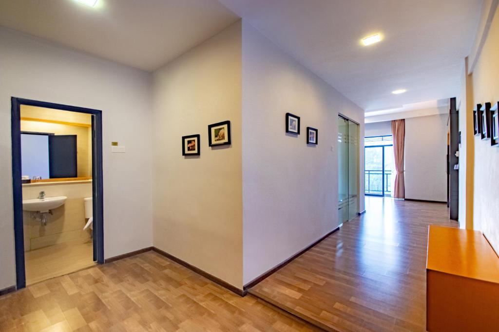 Pros : > Big spacious room > Got ceiling fan at living room which is handy during hot noon spell. > Kitchen is provided along with microwave, fridge and crockery set. > Exclusive interior setting > Working TV (but limited channel with 0 (zero) terrestrial channels. Only certain Astro channels aired. > Close to Kea Farm business centre, just walk few hundred meters away (not advisable for visitors with weak heart and lungs due to steep terrains) > Hearty buffet breakfast > Balcony offered nice pleasant and chilling view > Balcony equipped with mesh door ensuring efficient air circulation and fresh air coming in > Elevator working efficiently fast without having to wait long for one. > Very close to eateries, hardware store, pharmacy and convenience store, all under one roof one building. Cons : < Bathroom floor not exactly that clean. 24 hours in wet condition. Blackish mold built up between tiles at secluded areas. < Free parking up to 24 hours. If you stay more than 2 nights, you have to at least ONCE need to take the car out after validating for free parking though you have no desire to drive around. Just have to drive out and drive in again. If you are lucky, you'll get back your premium parking in front of lift lobby if no other drivers snatch your spot. < Unfortunately previous guest had set my fridge to max cold, it becomes frosty with big ice-build up at freezer area. < The bedroom should also be equipped with ceiling fan too. For some people, a room without fan means a stuffy room without proper air circulation. I had to buy portable clip-on fan for such purpose. < Need to walk long from parked cars to reception to validate parking ticket and becomes more complicated when it rains when you are already halfway to the reception Overall my stay here is wonderful and unforgettable moment. Will sure come again stay here