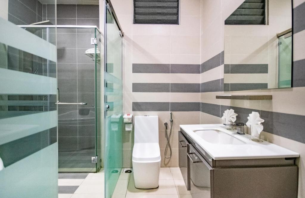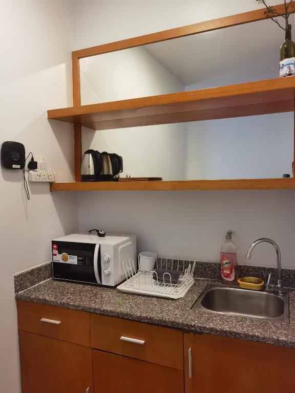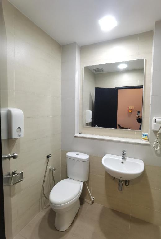 Stayed for one night with family (5 adults). Great location, but there are a few things future guests should know. Check-in is not at the hotel building, but at The Retreat (5 mins walk). RM100 deposit (cash) + RM3 tourism tax (card). Check-in was smooth and staff provided full info. Parking is limited. Free Touch ‘n Go validation only once per day – otherwise, you’ll be charged RM6.40 (weekday) or RM7.50 (weekend). Our 2-bedroom unit was clean and comfortable, though a bit musty. Kitchen had microwave, kettle, mini fridge — but no dining table. Cabinet was slightly worn. Living room okay, but sofa looked old, and no carpet, so floor was cold. Balcony small – would be better with a table & chairs. Bathroom had water heater (needs time), but poor shower design and no towel/clothes hanger. Slight odor too. No iron provided. Bedroom was tidy with prayer mat and qibla direction – great touch. But doors were semi-transparent, so privacy might be an issue if sharing with non-family. Check-out was smooth. Returned card and got deposit back. Tip: Check reviews before booking – depends on your luck which unit you get. Ours was okay.