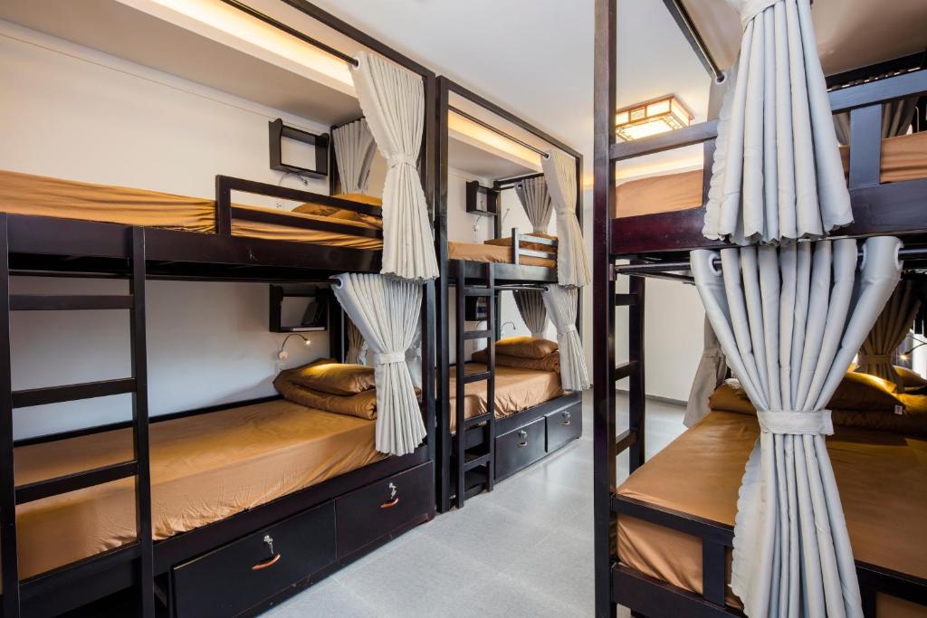 The vibe of the hostel is bar-party. There is a daily happy half-hour of free beer if it's your thing. That said, the dorms are super quiet in the evenings & fairly clean. Lots of room in the dorms & under beds for even huge luggage suitcases. They did not add more bunk beds than necessary. Not many people coming in and out, so no mosquitos in the dorms. The shelves next to the socket is very nice. Although, only one socket might be problematic for some. Thick blankets, good air-con. The mattresses are SUPER hard though. I also did not like the 20k for towel extra, that's just super rare for hostels to do. I still don't know what the key and card is for, should we be locking the dorm door? ^_^ I travel in a different way, so no kitchen, no microwave, no tea kettle, no fridge makes this not my comfiest place. Out of season, the rest of the hostel property looks fairly abandoned, so you can find seclusion and even do yoga up at the terrace in the mornings with full privacy.