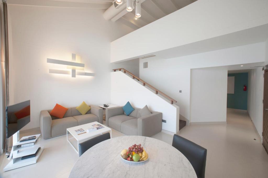 Os hóspedes podem desfrutar de um toque de luxo com roupões de banho macios e toalhas de alta qualidade, que são fornecidos juntamente com produtos de higiene pessoal selecionados. Para aqueles que apreciam uma boa xícara de café ou chá, as facilidades incluem uma máquina de café/chá, além de água engarrafada de cortesia. Com um frigorífico disponível, os hóspedes podem armazenar os seus lanches favoritos, e a presença de cortinas blackout garante um sono tranquilo e reparador. A separação da sala de estar proporciona um espaço adicional para relaxar, tornando cada quarto um verdadeiro refúgio de conforto e estilo.
