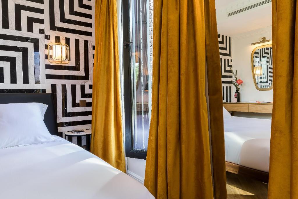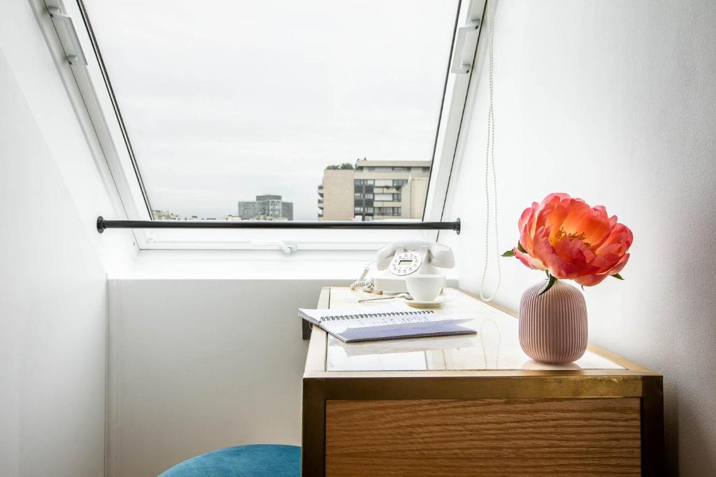 Aproveite a vista deslumbrante da cidade a partir do seu próprio balcão ou terraço, um espaço ideal para relaxar ao final do dia. Para garantir uma estadia ainda mais confortável, o hotel oferece água engarrafada gratuita, bem como chá e café instantâneo de cortesia. Os hóspedes também encontrarão toalhas e lençóis de alta qualidade, além de produtos de higiene pessoal cuidadosamente selecionados. Para aqueles que buscam um toque extra de aconchego, alguns quartos possuem lareiras, proporcionando um ambiente acolhedor e romântico em Paris.
