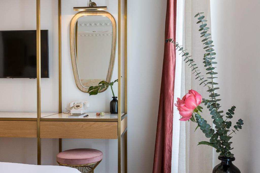 Além disso, o hotel conta com um concierge dedicado, pronto para ajudar com recomendações e reservas, tornando a sua experiência em Paris ainda mais especial. Acesso à internet é garantido, com Wi-Fi gratuito disponível em todos os quartos e em áreas públicas, permitindo que os hóspedes se mantenham conectados. Para maior comodidade, o Rose Bourbon também oferece armazenamento de bagagem e serviço de limpeza diária, assegurando que cada detalhe da sua estadia seja cuidado. Num ambiente acolhedor, com uma lareira que adiciona um toque de charme, o Rose Bourbon é o refúgio perfeito para quem visita a cidade-luz.