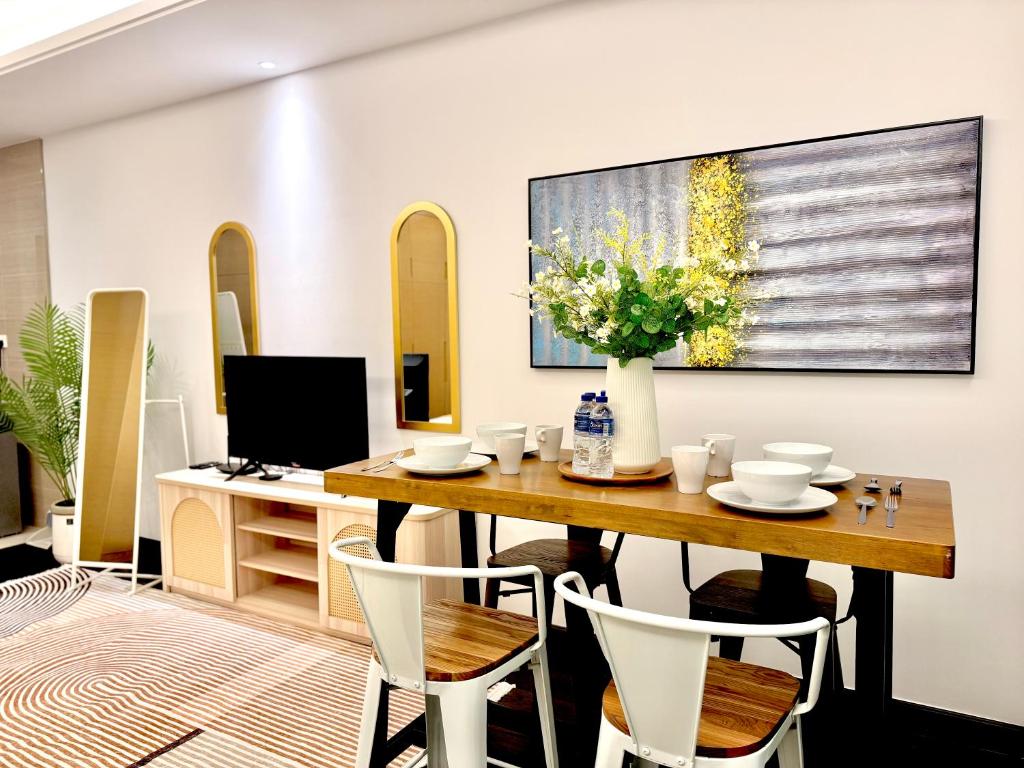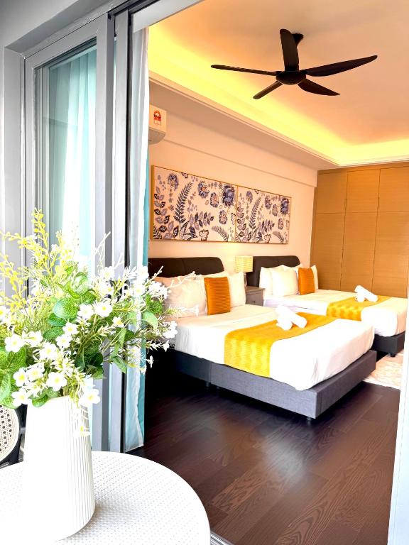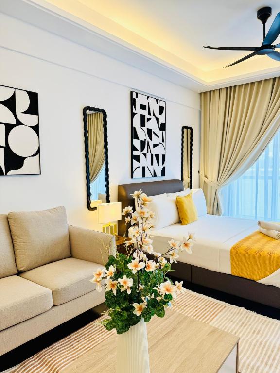 R&F Princess Cove By Homefort Suites offers an array of thoughtfully designed rooms to suit every traveler's needs. Choose from the Standard Suite, a comfortable 43-square-meter space featuring a cozy Queen Bed, perfect for relaxing after a day of exploring Johor Bahru. For those traveling with family or friends, the Studio Sea View Suite provides 40 square meters with two Queen Beds, ensuring ample space and comfort. If you desire more room and a touch of elegance, the spacious Skyline Suite spans 72 square meters and includes two Queen Beds, ideal for larger groups or extended stays. Additionally, guests seeking a beachfront experience can opt for the Studio - Beach Front, a 40-square-meter retreat with a Queen Bed, offering stunning views and easy access to the sea.