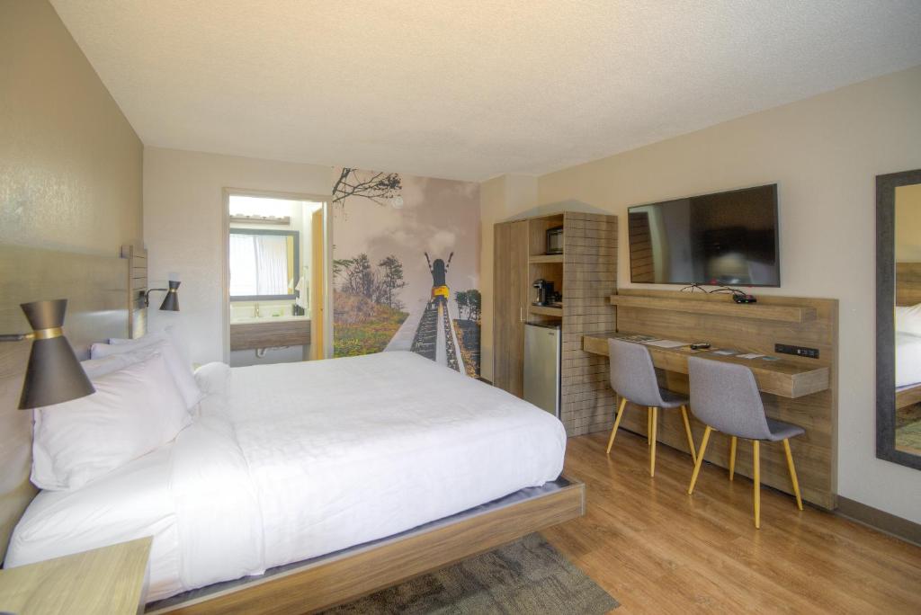 La Clarion Pointe Downtown Gatlinburg, oaspeții pot alege dintr-o varietate de opțiuni de cazare care se potrivesc perfect nevoilor lor. Camerele cu 1 pat king, non-fumat, oferă un refugiu elegant și confortabil, ideal pentru cupluri sau călători individuali. Pentru familii sau grupuri, camerele cu 2 paturi queen, non-fumat, sunt alegerea perfectă, oferind un spațiu generos și primitor. De asemenea, Clarion Pointe Downtown Gatlinburg dispune de camere cu 1 pat king, smoke-free, și opțiuni accesibile, asigurându-se că toți oaspeții se bucură de un sejur plăcut și confortabil.