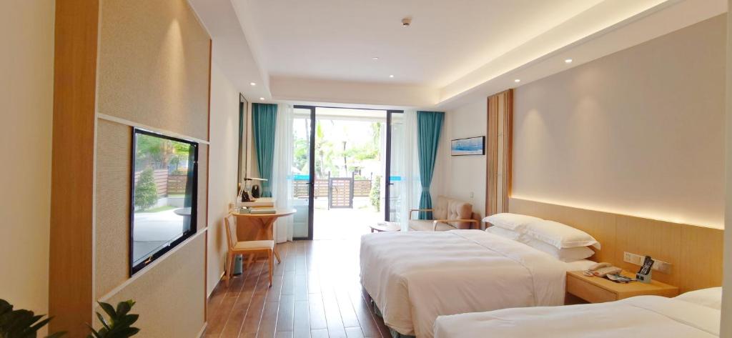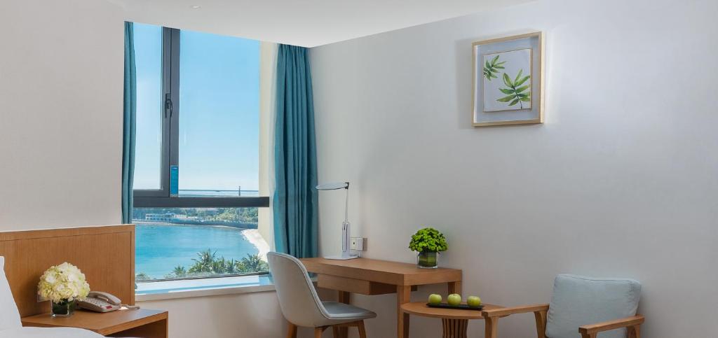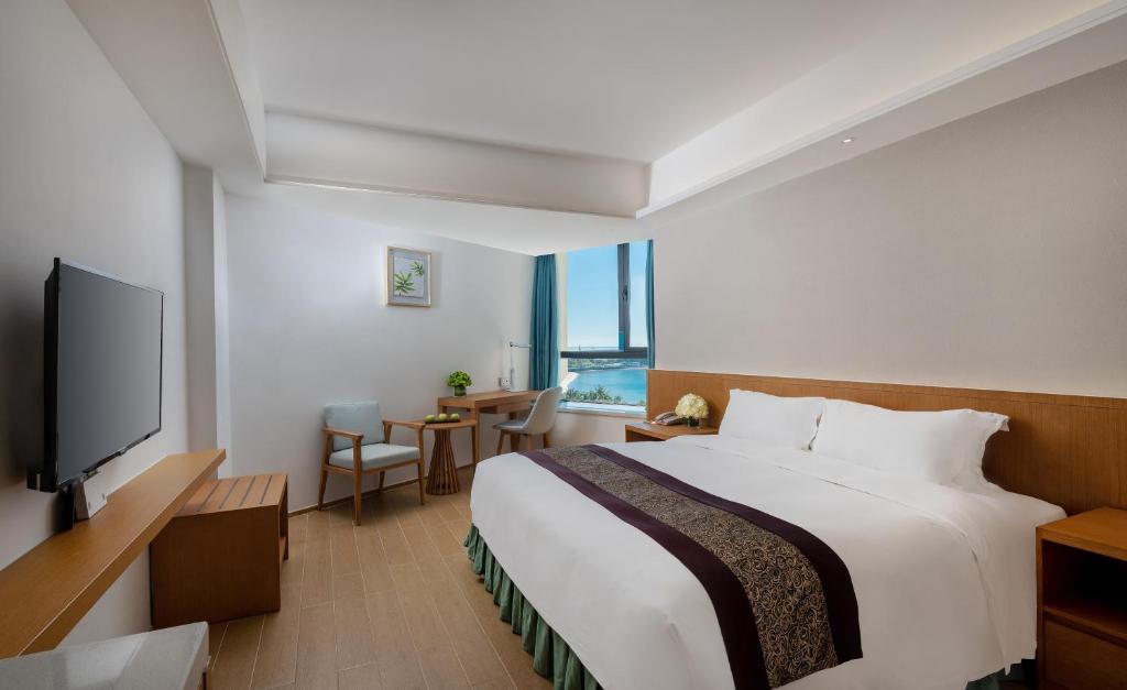 Отличное расположение, выход в море прямо из отеля. Территория хороша, бассейн приличный. Отель китайский, ждать от него соответствия мировым стандартам не стоит. По-китайски чисто: принадлежности, бельё, халаты, - всё идеально чистое и свежее. Но сопровождается это не первой свежести стенами и не сильно чистыми занавесками в номерах. В общем, стандартные китайские 4*. Нам это привычно, поэтому мы остались довольны. Номера «стандарт» - кошмар ужасный. Какое-то общежитие с видом на помойку. Но стоит чуть переплатить до номера «с частичным видом на море» без балкона - и попадаешь в хороший просторный светлый номер с большим окном и хорошей звукоизоляцией. Завтраки китайские, но выбрать есть, из чего. Кофе варят, яйца жарят :) Персонал вежливый, убирают ежедневно. Если на дверь повесить карточку «не беспокоить», то действительно не беспокоят :))) В целом всё прошло отлично! Спасибо! Мы довольны!
