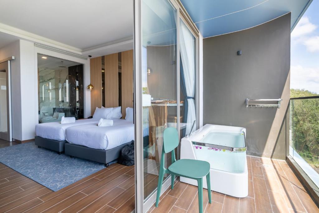 Каждый номер также оснащен балконом или террасой, где вы сможете насладиться утренним кофе или вечерним чаем, приготовленным с помощью кофемашины или чайника, предоставленных в номере. Кроме того, вы найдете в холодильнике бесплатную бутилированную воду и другие удобства, такие как черные шторы для полного затемнения и мягкие полотенца. Номера также включают отдельную гостиную, что создает дополнительное пространство для отдыха и релаксации. The Blue Hotel предлагает идеальную атмосферу для незабываемого отдыха на Пхукете.