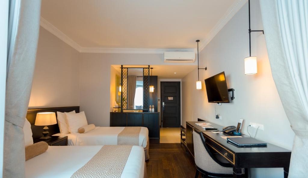 Guests can indulge in a range of rejuvenating treatments at the hotel's spa, which offers traditional Khmer massages and therapies. The outdoor swimming pool provides a refreshing escape from the heat, while the lush gardens offer a peaceful setting for a leisurely stroll. With its warm hospitality, serene ambiance, and convenient location, Sala Kamreuk is the perfect choice for travelers looking to experience the best of Siem Reap.