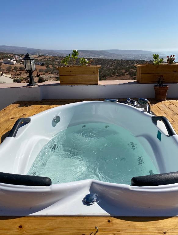 For those looking to socialize or simply enjoy a cozy evening, the shared lounge and TV area serves as a vibrant hub. This welcoming space is perfect for unwinding with fellow travelers or catching up on your favorite shows after a day of adventure. With comfortable seating and an inviting atmosphere, it’s an ideal spot to relax, share stories, and forge new friendships. Additionally, the hot tub offers a luxurious retreat where you can soak your cares away while enjoying the stunning views of the surrounding landscape. Sun House Morocco truly provides an exceptional blend of relaxation and entertainment, ensuring every guest enjoys their stay to the fullest.