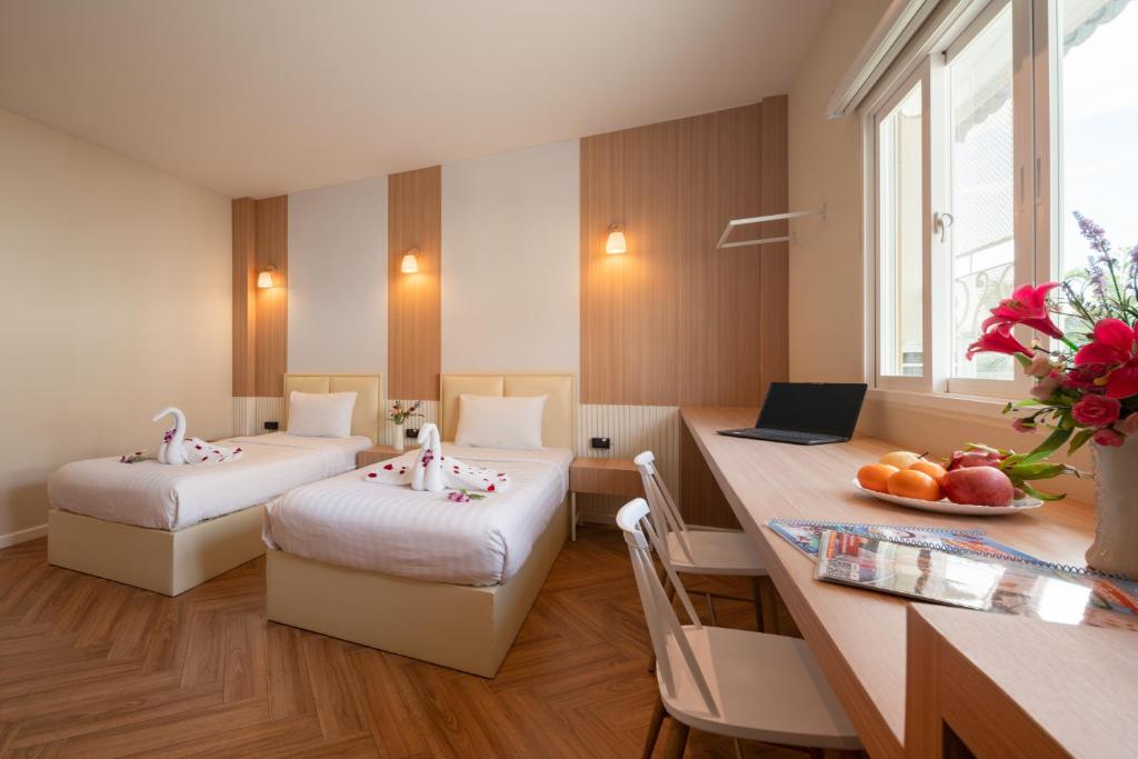 แกรนด์บางเสร่ ให้บริการห้องพักที่สะดวกสบายและหลากหลายให้เลือกสรร ห้อง Deluxe มีขนาด 30 ตารางเมตรพร้อมเตียงคิงไซส์ สำหรับคู่รักหรือคนเดียวที่อยากพักผ่อนอย่างสบายใจ ส่วนห้อง Twin ไม่สูบบุหรี่เป็นห้องสูงสุด 30 ตารางเมตรพร้อมเตียงเดี่ยว สำหรับผู้เดียวหรือคู่เพื่อนที่ต้องการพักผ่อนร่วมกัน การจองห้องพักเหล่านี้ผ่าน Agoda จะทำให้ผู้ใช้ได้รับประสบการณ์ที่ดีที่สุด ด้วยราคาที่ดีที่สุดและความสะดวกสบายในการจอง