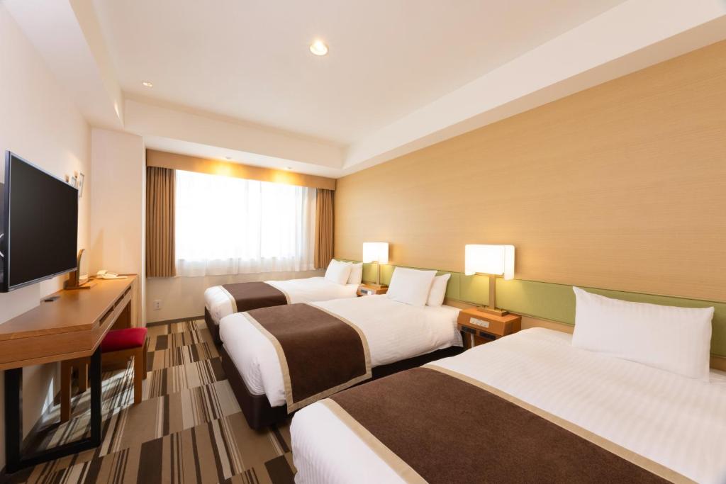 ห้องพักกว้างขวาง บำรุงรักษาอย่างดีและสะอาด ยกเว้นจุดดำเล็กน้อยบนกระเบื้องในห้องอาบน้ำ สถานที่ตั้งมีร้านสะดวกซื้อไม่กี่แห่งและสถานีรถไฟอยู่ไม่ไกลจากโรงแรมเพียงไม่กี่ก้าว ปราสาทโอซาก้าก็อยู่ห่างไปเพียงไม่กี่นาทีโดยการเดิน พนักงานบริการเป็นมิตรและถึงแม้ว่าเราจะต้องใช้ Google แปลภาษาในบางครั้งในการพูดคุย แต่พวกเขาช่วยเหลืออย่างมากและทำทุกอย่างเพื่อให้การเข้าพักของเรามีความสะดวกสบายที่สุดเท่าที่จะเป็นไปได้! ฉันจะกลับมาเข้าพักที่โรงแรมนี้ในครั้งต่อไปที่มาเยือน.