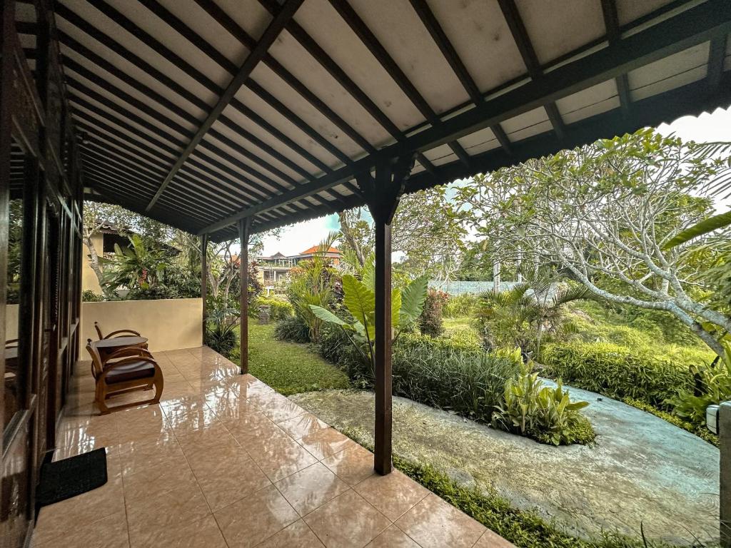 จากถนนหลักในอุบุด ทางเข้าจะสับสนเล็กน้อย แต่ตั้งอยู่ด้านขวาก่อนที่จะเริ่มลงไปสู่สะพาน โดยขึ้นไปตามเนินสองด้านที่มีอยู่ ด้านซ้าย (ซึ่งเป็นเนินขนานกับถนนหลัก) ที่จะไปถึงที่นั่น ฉันพักในวิลล่าพร้อมสระว่ายน้ำส่วนตัว แม้จะมีอายุการใช้งานนาน แต่ห้องพักกว้างขวางและสะดวกสบาย สิ่งอำนวยความสะดวกมีแค่แปรงสีฟัน แชมพู, สบู่ใช้ตัว และสบู่ก้อน และผ้าขนหนูอาบน้ำเท่านั้น (ไม่มีผ้าขนหนูใบหน้า) สระว่ายน้ำส่วนตัวมีขนาดไม่ใหญ่พอที่จะว่ายน้ำได้และไม่มีเก้าอี้อาบแดดทำให้ไม่สามารถอาบแดดได้ แต่มีระบบหมุนเวียนน้ำและสะอาด (ในโรงแรมมีสระว่ายน้ำรวมที่มีเก้าอี้อาบแดด) ห้องครัวมีแค่เตาแก๊ส ไม่มีไมโครเวฟ และตู้เย็นก็มีขนาดเล็กแค่หนึ่งตัวในห้อง แล้วก็มีเพียงกาต้มน้ำไฟฟ้า ข้างนอกมีมดเล็กๆ เยอะ ดังนั้นถ้าทิ้งอาหารไว้จะมีมดขึ้นทันที ไม่มีแผ่นดักยุง ดังนั้นต้องระวังไม่ให้ยุงเข้ามาในห้อง ฉันคิดว่าถ้าพักที่นี่โดยเข้ากับความเป็นบาหลี ก็เป็นโรงแรมที่ดีทีเดียว