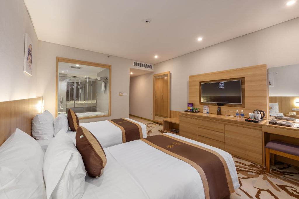 ครอบครัวของฉันเพิ่งพักที่โรงแรมรีดในนinh บินห์ และมีประสบการณ์ที่ยอดเยี่ยม โรงแรมใหม่และทันสมัยนี้มีการผสมผสานที่ยอดเยี่ยมระหว่างความสะดวกสบายและสไตล์ ห้องพักที่กว้างขวางของฉันมองเห็นวิวเมืองที่สวยงาม ซึ่งเพิ่มเสน่ห์โดยรวมของโรงแรม อาหารเช้าแบบบุฟเฟ่ต์อร่อยมาก มีตัวเลือกมากมายเพื่อให้เหมาะกับทุกความชอบ โรงแรมยังมีสิ่งอำนวยความสะดวกมากมาย รวมถึงสระว่ายน้ำบนชั้นสูงที่มีวิวที่น่าทึ่ง ทำให้เป็นสถานที่ที่สมบูรณ์แบบสำหรับการพักผ่อน ฉันขอแนะนำโรงแรมรีดสำหรับผู้ที่มาเยือนนinh บินห์ อย่างยิ่ง