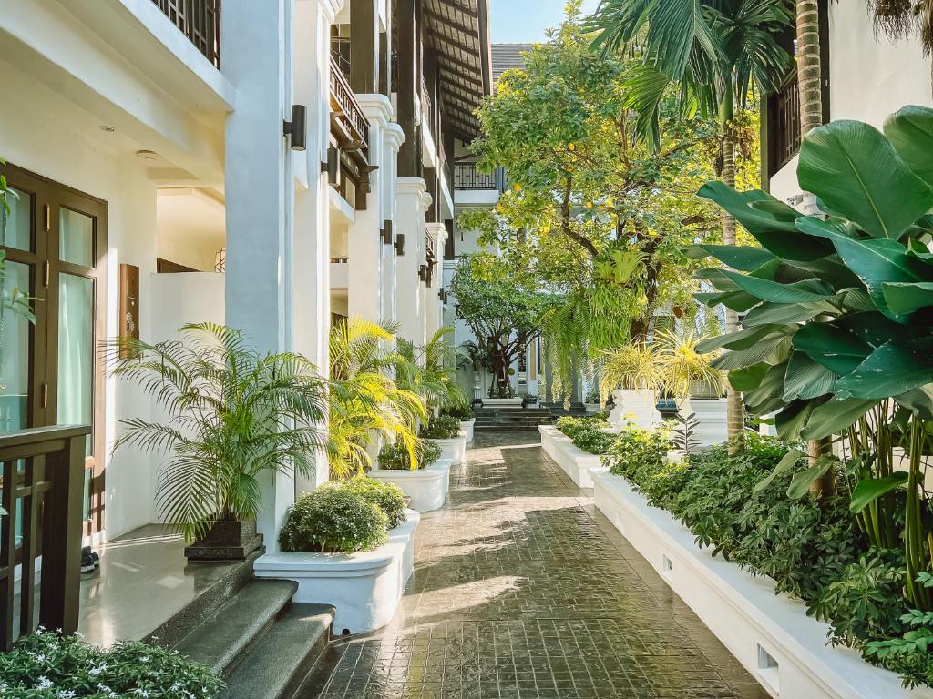 We were two couples staying at this lovely hotel for3 nights the 1 night after visiting an elephant sanctuary. The hotel is a hidden gem located in a convenient neighborhood to local shopping, sightseeing and restaurants. The interior courtyard is beautiful with lots of lush greenery, pretty architecture and an inviting pool. Our rooms were comfortable, very clean and modern with a spacious bed area and bathroom. We had rooms on the 2nd floor overlooking the pool. The buffet breakfast is quite good: lots of variety, fresh and delicious. We also enjoyed a lunch one afternoon. The staff is friendly, knowledgeable and very helpful. I would definitely stay here again if I’m visiting Chaing Mai.