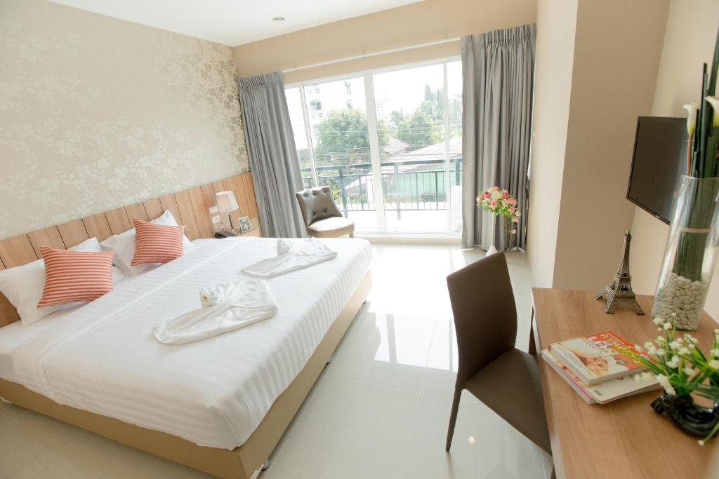 Unfortuntaely, despite the staff being very nice and the room itself generally being okay, this is not a hotel I'm comfortable recommending for most people. First, the good things (because there's a lot more bad). The front desk staff were kind and tried to be helpful, even when they couldn't help. The cleaning staff were quite lovely and did good work. Each day, two water bottles, a new trash bag, and a a roll of toilet paper were left on the door, which was very helpful. Air conditioning was good quality and would keep the room quite cool if desired. Room itself was quite large and a comfortable place to sit or rest in. Onto the bad elements. I should note that if any of these things were advertised properly, I don't think I would have minded. But they were NOT, the Agoda listing showed different information than reality. I would have not have booked this room if most of these elements were accurately represented in the listing. 1 - I selected a room with a large bed, called a 'King' bed. It was not a king bed, but two doubles placed side by side with a large King-sized sheet over it. Honestly, I would have been okay with just doubles, that wouldn't have been an issue for me. But being told I could have a king bed and selecting a king bed, and then getting two beds pushed side by side was very frustrating. Not to mention, one of the beds was somehow uneven so no matter how I moved or what I did, it would constantly thump against the floor. The mattresses and pillows were a solid "okay" quality. Not good by any means, but not awful. Not a bed I would like to sleep in again though. I did mention this dissatisfaction in an Agoda help chat, and they contacted the hotel about. The hotel did call my room in the morning, said Agoda reached out, and asked if I'd like to switch rooms. While I appreciate the offer, switching rooms wouldn't have done anything since the king beds still are not king beds. 2 - Wifi is very slow, but technically included, and constantly cycles, making you reconnect and log back in every 20 minutes or so. If you have remote work to do, it will be nearly impossible. If you just have to send some emails and browse the web or plan your trip, it will be doable but frustratingly slow. If you want to watch a video or listen to a podcast, it will constantly buffer or stop. So while wifi is included, the quality is borderline unusable much of the time. I had to use phone data much of the time, which is a huge added expense that I was trying to avoid. That's a notable element of choosing a hotel when travelling. 3 - 'Laundry Service' is listed as an amenity, and unfortunately it is ONLY a paid service. There is no washer/dryer on site and the 'service' costs 60 baht for one individual item, which is VERY expensive. Don't list Laundry Service as an amenity that's included when it is a separate PAID service. The only option for laundry is to walk a few blocks down the street and do it yourself. For a solo traveller, access to easy laundry is absolutely a determining factor in choosing a hotel. 4 - 'Postal Service' is listed as an amenity. They do not have a postal service. I asked for help in mailing a postcard and they directed me to the post office a few blocks away, saying they don't help with any mail. 5 - Not actually a determining factor for me, but just a weird one. I have NO idea why an 'onsite nightclub' is described in both the amenities and the hotel description. There is no nightclub lol. 6 - location is quite far from any stations. This is accurately represented, but worth paying extra attention to. It's nearly 2km to the nearest station, about a 20 minute walk, which can easily dissuade you from actually leaving the hotel. 7 - while the room itself was non-smoking and did not smell of smoke, clearly some people staying did smoke in or near the hallways, as they often had a bit of an odor. Additionally, if you opened the patio doors at all for som