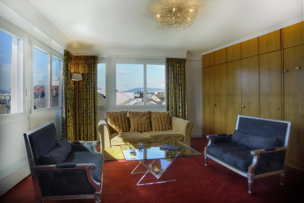 As you step out of the hotel, you'll find yourself surrounded by a myriad of attractions and landmarks. Take a leisurely stroll along the picturesque Lake Geneva, where you can admire the iconic Jet d'Eau, a magnificent water fountain that shoots water 140 meters into the air. Explore the charming Old Town, known as Vieille Ville, with its narrow cobblestone streets, historic buildings, and quaint shops selling Swiss chocolates and watches.