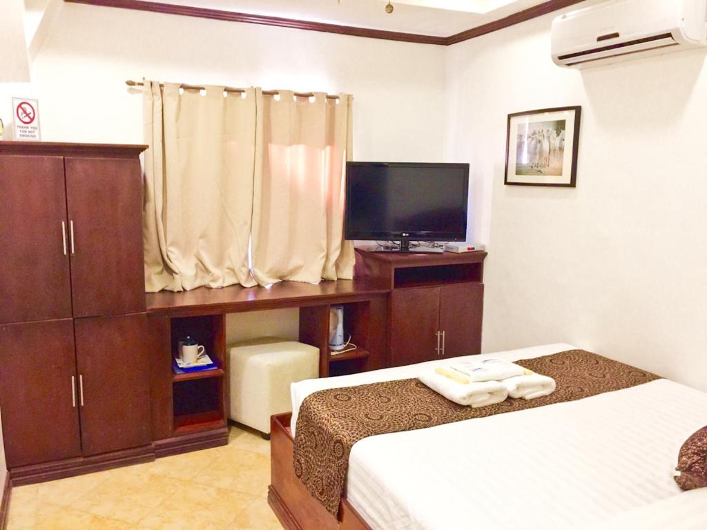 Had our stay in Room 8, Standard room. All the listed room facilities were actually included. Not so big room if you have kids with you, but since kids 0-12 yo are free of charge, it still above average. Good sleeping capacity is 2 adults and 1 petite child. They have TV with many cable channels, mini ref which works so well. Cabinets and hangers. Aircon is good! Malamig. They also have ceiling fan which we don't use since aircon alone is chilling. Every floor has water dispenser, you can get free drinking water. They provided 3 towels, shampoo at soap. CR is clean with bidet. Water heater is working. Hotel location is near bars which based from other comment makes noise during 2am. But we don't experience the noise, maybe because we went there during weekdays. They have parking but limited. Parking has access to emergency exit which is accessible from our room. The 2 receptionists, the one from the day we checked-in and the other one when we were checking out were polite and not snobbish. However, some staff were. I encountered a few staffs early morning since they were cleaning and changing beddings, I smiled and greeted them but none of them responded. 🤣 Don't forget to bring cash because you need to desposit 1k upon checking in, but will return it to you upon checking the room. Smooth transaction overall. Thanks