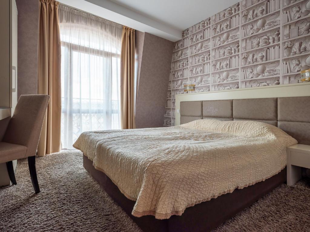 Готель Concorde розташований на тихій, спокійній вулиці в місті Велико-Тирново, за 5 хвилин ходьби від різноманітних розважальних закладів у центрі міста. 4-поверховий готель оснащений розкішним ліфтом, а з вікон його бару відкривається мальовничий вид на Свету Гору і Арбанаси, старовинне селище з унікальною архітектурою. Будівля готелю внесена до списку культурних пам'яток Старого міста. Цей статус підкреслюється вдалим поєднанням класичного італійського та французького стилів в інтер'єрах усіх приміщень готелю. До послуг гостей затишний лобі-бар, конференц-зал, сауна та зона відпочинку, оздоблена в яскравій кольоровій гамі. При готелі працює парковка, стоянка таксі, пункт прокату автомобілів і квітковий магазин.