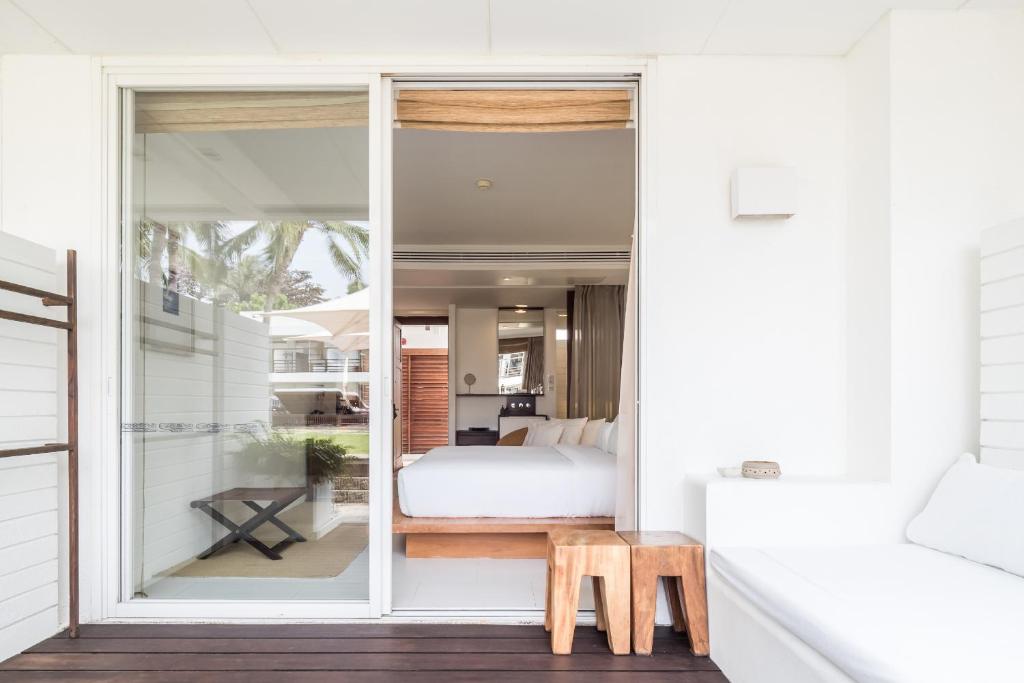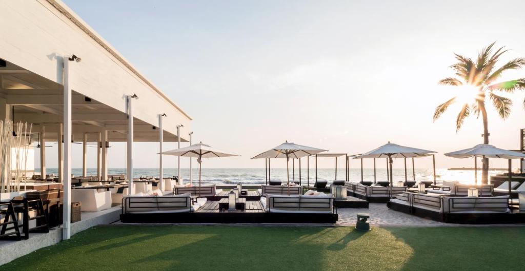 ผู้เข้าพักห้อง ซิลก์แซนด์; แซนสกาย เออร์บัน และแซนสกาย ดีลักซ์ ฝั่งรีสอร์ทไม่ติดทะเล (แซนด์ไซด์) รับประทานอาหารเช้าที่ห้องอาหารอบอุ่น ฝั่งเดียวกับที่พักแต่สามารถข้ามถนนไปใช้บริการห้องอาหาร Oceanside Beach Club & Restaurant สำหรับมื้อกลางวันและเย็นได้