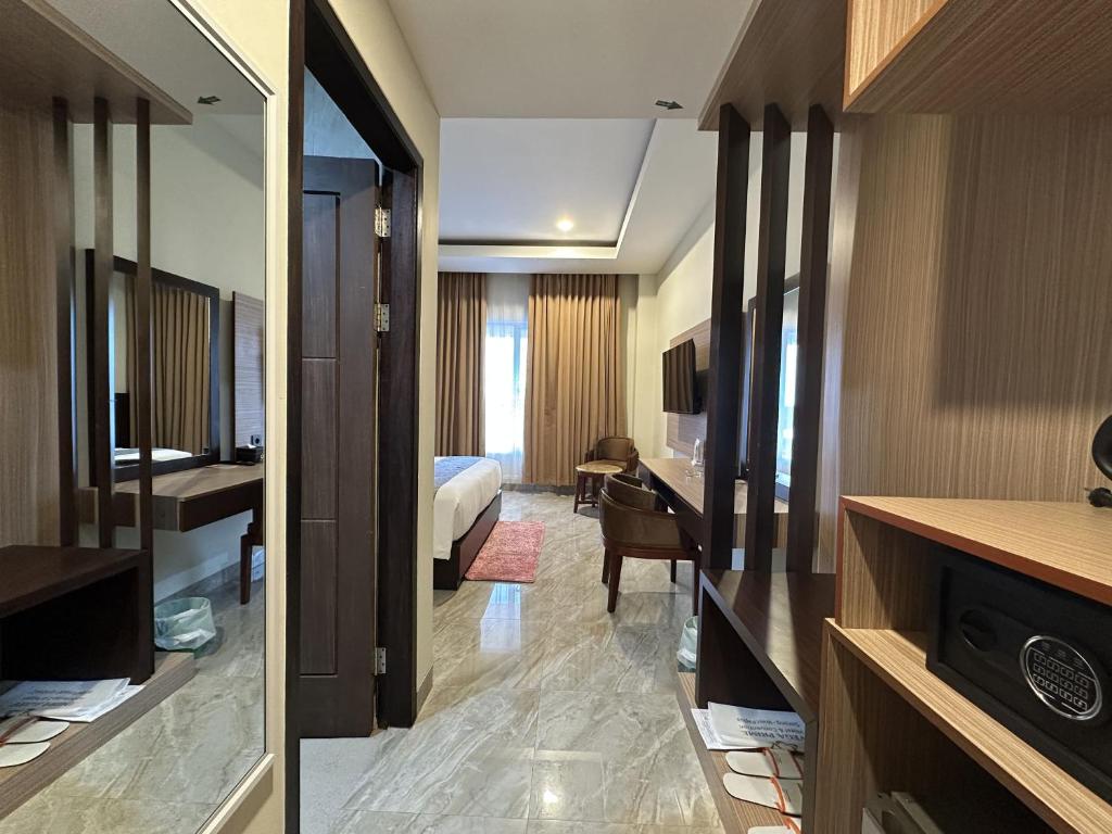 Experience the epitome of comfort and elegance at Vega Prime Hotel & Convention in Sorong, Indonesia. With a range of room types to choose from, you are guaranteed a memorable stay. The Deluxe King room offers a generous space of 24 square meters, featuring a cozy Queen Bed for a restful night's sleep. For those seeking a touch of luxury, the Royal Deluxe Room boasts a lavish 1 King Bed, ensuring a truly regal experience. If you're traveling with family or friends, the Superior Twin room is perfect, offering a spacious 24 square meters with 2 Double Beds. Booking these exceptional rooms on Agoda not only guarantees you the best prices, but also provides a hassle-free and convenient experience. Enjoy the convenience of browsing and booking your preferred room type with just a few clicks, ensuring a seamless and enjoyable stay at Vega Prime Hotel & Convention.