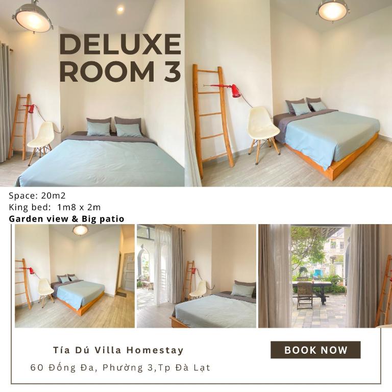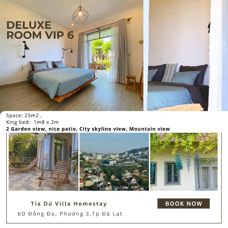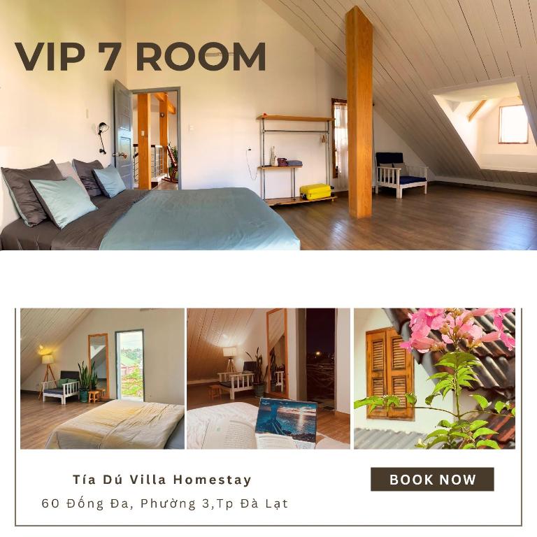 Biệt thự Tía Dú Homestay Đà Lạt là một nơi lưu trú đáng nhớ. Khách sạn này không chỉ sạch sẽ mà còn đậm chất độc đáo. Nằm trong khu biệt thự ở Đà Lạt, nơi có địa hình núi non, từ ban công khách sạn, bạn có thể nhìn ra toàn cảnh Đà Lạt, thật tuyệt vời!