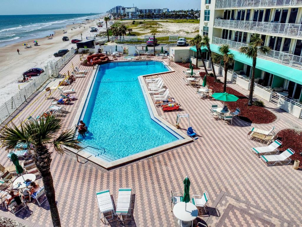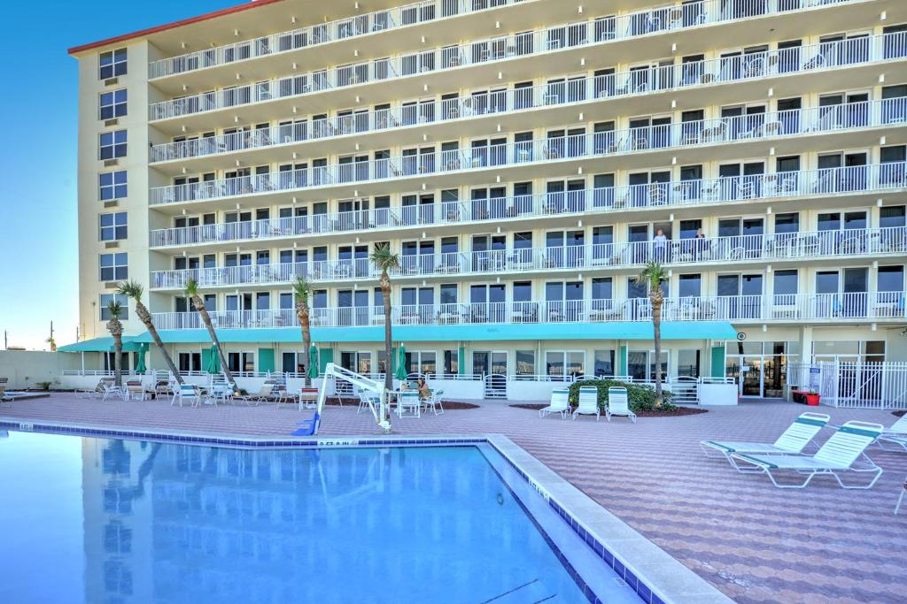 Indulge in the resort's world-class facilities, including a sparkling outdoor pool, a fitness center, and a rejuvenating spa. Take a leisurely stroll along the pristine white sands of Daytona Beach, located right at your doorstep. Explore the vibrant local dining scene or simply relax and unwind in the resort's serene ambiance.