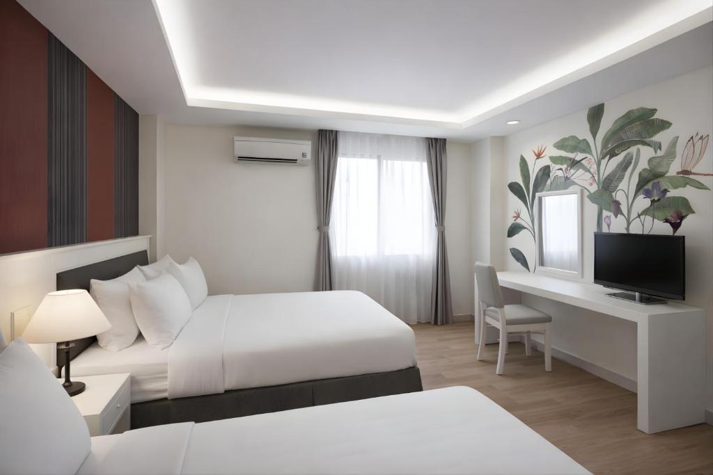 亞洲露比中心點酒店提供多種房型選擇,包括舒適客房、溫馨雙人房、舒適雙床房、高級豪華三人房和寬敞舒適房。舒適客房面積為20平方米,配有1張大床或2張單人床;溫馨雙人房面積為18平方米,配有1張大床;舒適雙床房面積為18平方米,配有2張單人床;高級豪華三人房面積為24平方米,配有1張單人床或1張大床;寬敞舒適房面積為22平方米,配有1張大床。透過Agoda預訂這些房型,您將享受到最優惠的價格和便利無憂的預訂體驗。