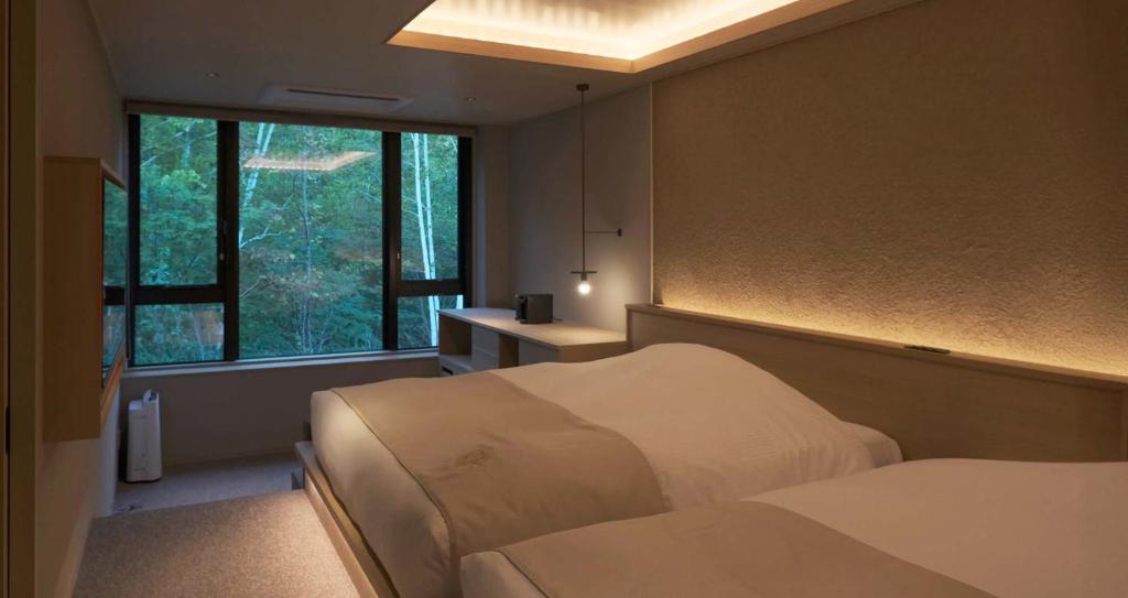 我入住了201號房間,從高高的天花板和直達天花板的窗戶可以一覽兩條河流交匯的冬季山谷,溫泉的溫度和泉質也極佳,讓我的身體迅速感到暖和。當我想從儲物區喝飲料時,可以隨時拿過來,並在房間的真空管音響上聽我最喜歡的鋼琴曲,或是閱讀書籍、觀看亞馬遜、舉辦派對,這個充滿非日常感的美妙房間非常適合讓人放鬆。而且距離札幌市中心不到一小時,這也是一大魅力。