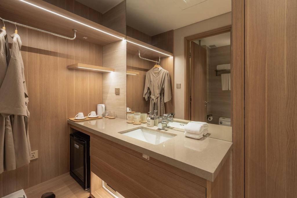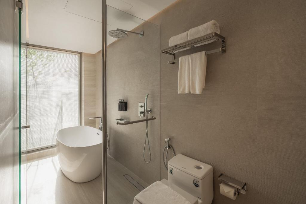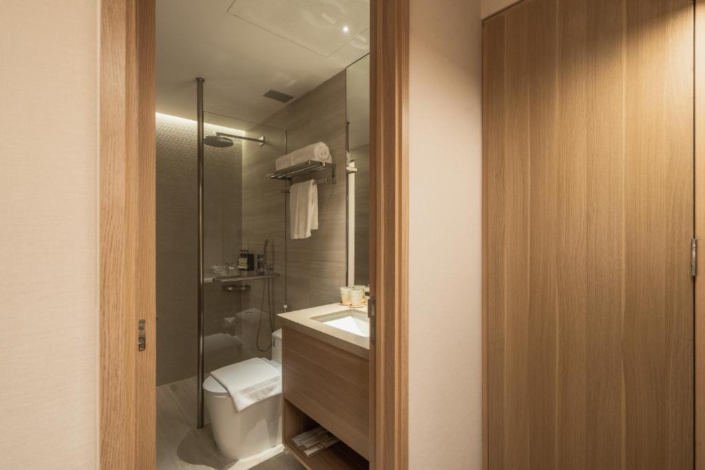 1.酒店很新,设施设备很齐全, 2.性价比很好 3.前台服务很好 略微不足的有: 1.当我到房间时房间门是打开的,吓我一跳我以为有人了 2.地面清洁不是很干净,地板上有类似纸箱碎屑的东西,还好我不是特别介意 3.mini bar 的声音真的很吵,我晚上睡觉时是拔掉mini bar电源的 4.厕所对体型要求比较高,比较拥挤 但总体仍然是一个很好的酒店,我很喜欢,我会再次选择入住。