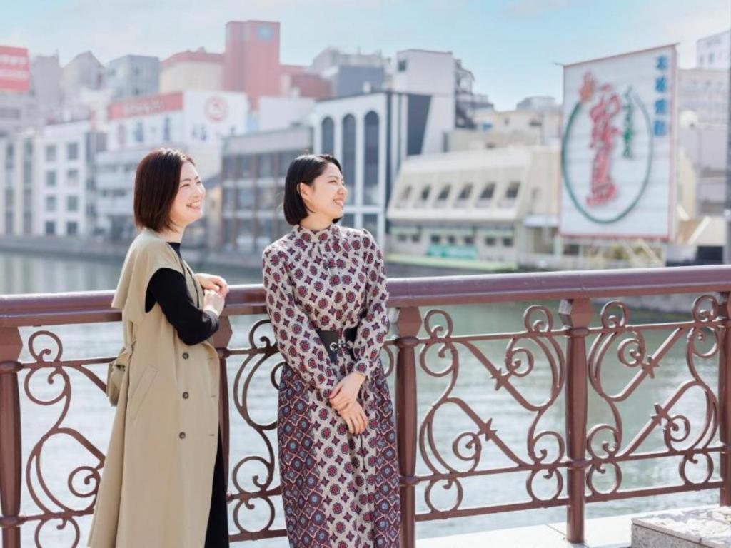 地鐵中洲川端站一號出口步行三分鐘即可抵達,一號出口只有階梯,如有大行李較不方便。 接待大廳在13樓,有咖啡、茶包及果汁給入住賓客使用,有一位男性接待人員能說中文,非常客氣有禮,能適當給予幫助。 雙人加大床空間大,床及枕頭很舒服,大浴場水溫較高,沒辦法泡太久。 早餐品項較少,味道都不錯,價格稍高。 附近走路一分鐘有唐吉軻德及food way超市,24小時營業,餐廳也很多,很方便。 旅館離天神及衹園不遠,步行可到達,天神中央公園的櫻花盛開,美極了。