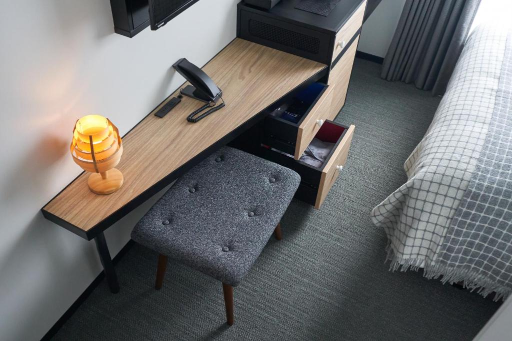 由於很晚才訂房,隨手就在上野站附近找家看起來不錯的旅店訂了下去,由上野站出口走路到這邊約5分鐘而已;實際住起來意外有驚艷到我,房間小算是日本都市飯店共同特色了,就不多評論,但除此之外房間設施很齊全,有額外需要的都能在一樓大廳自行拿取,甚至還有冠飯店名字的手沖咖啡包,房間冰箱有附等同入住天數的礦泉水數量,此外每天會再多給一瓶,還蠻貼心的服務。 房間內光線微暗,桌子說真的很小,桌子高度對很高腳長的人不太友善,不過算了反正回飯店就是睡覺而已,廁所的空間配置看跟設計質感還不錯,沐浴乳、洗髮精洗完感覺也還算不錯的牌子。 不過有個大缺點是冷氣出風口設計直接吹頭,還怎麼調整都沒辦法讓出風口不吹頭,索性直接倒過來頭在床頭,就可以睡的蠻舒適;另一個缺點就是入住後第5天才會打掃房間,也就是不適合長住,垃圾會滿出來,要請他們打掃要額外收費,可能就是這間飯店為什麼價格相對低的原因.. 飯店前台則是日本少有能以英文溝通的前台,還以為只有像是JR、Granvia、Daiwa等比較大的品牌才有辦法,這點蠻加分的,此外也可以寄放當天的行李,如果下次還有要短期住上野會再考慮這間飯店。