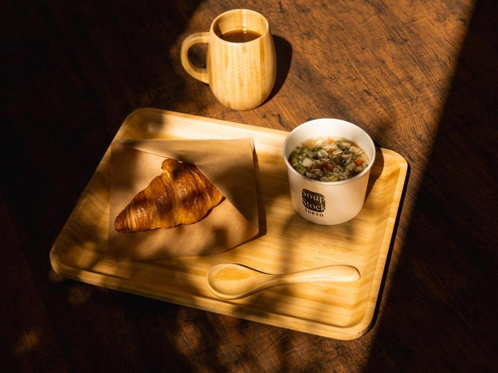 一樓大廳旁可以用餐,也提供可頌麵包、湯包、咖啡及茶包等都可自取,非常貼心。