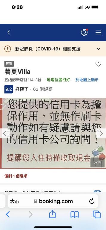 已驗證住客過去曾入住暮夏Villa的平均住宿晚數為1 晚。