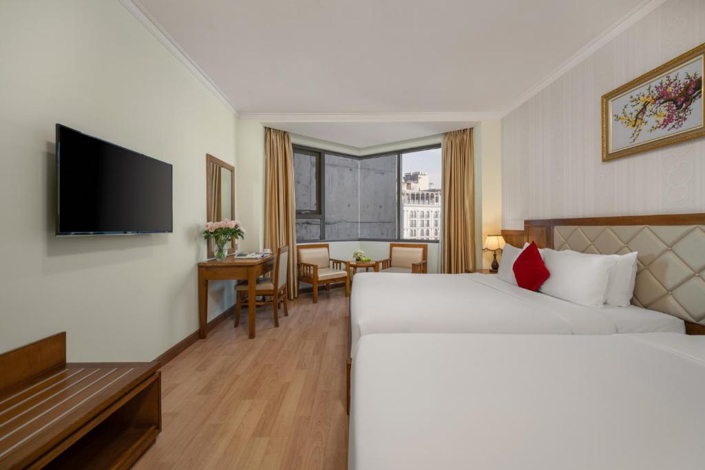 峴港福美擁有豪華的客房和套房,每間房間都設有現代化的設施和舒適的床鋪,為您提供一個舒適的住宿體驗。飯店內還設有一個設備齊全的健身中心和一個寬敞的游泳池,供您在度假期間放鬆身心。此外,飯店的餐廳提供各種美味的當地和國際菜餚,讓您品味來自世界各地的美食。