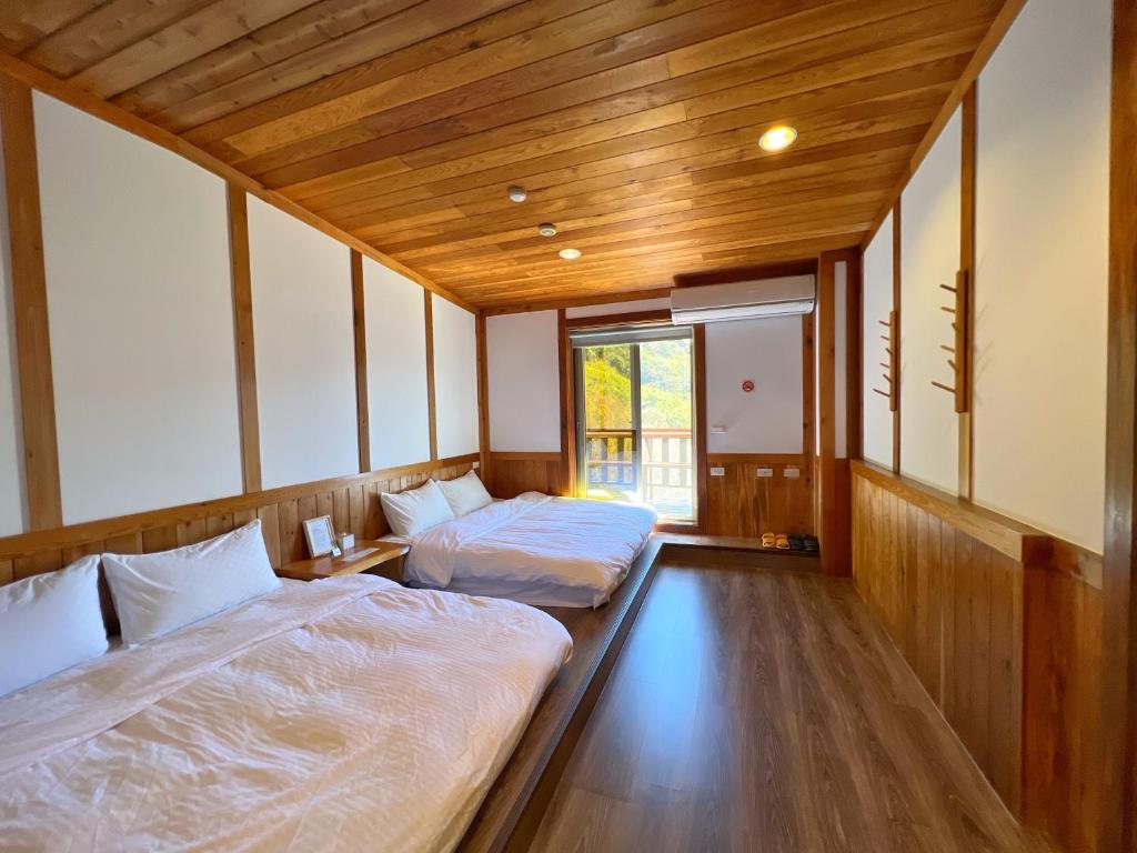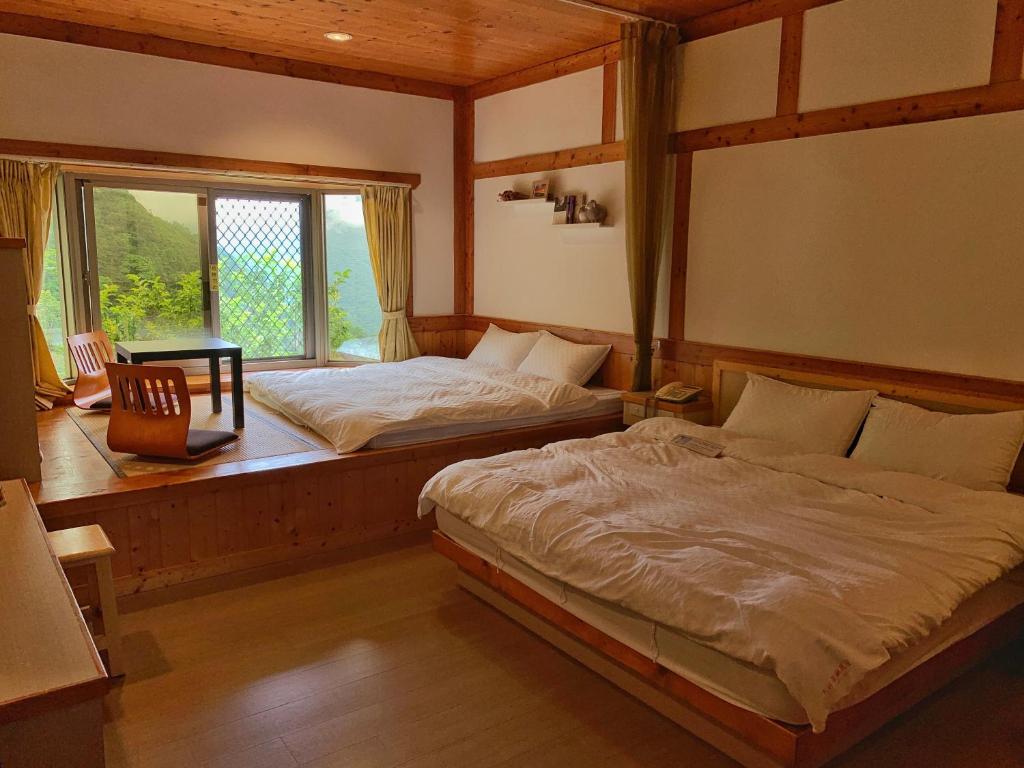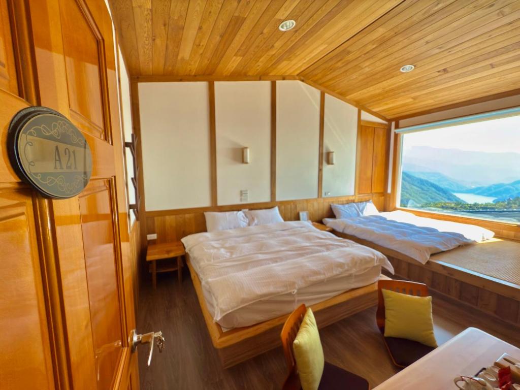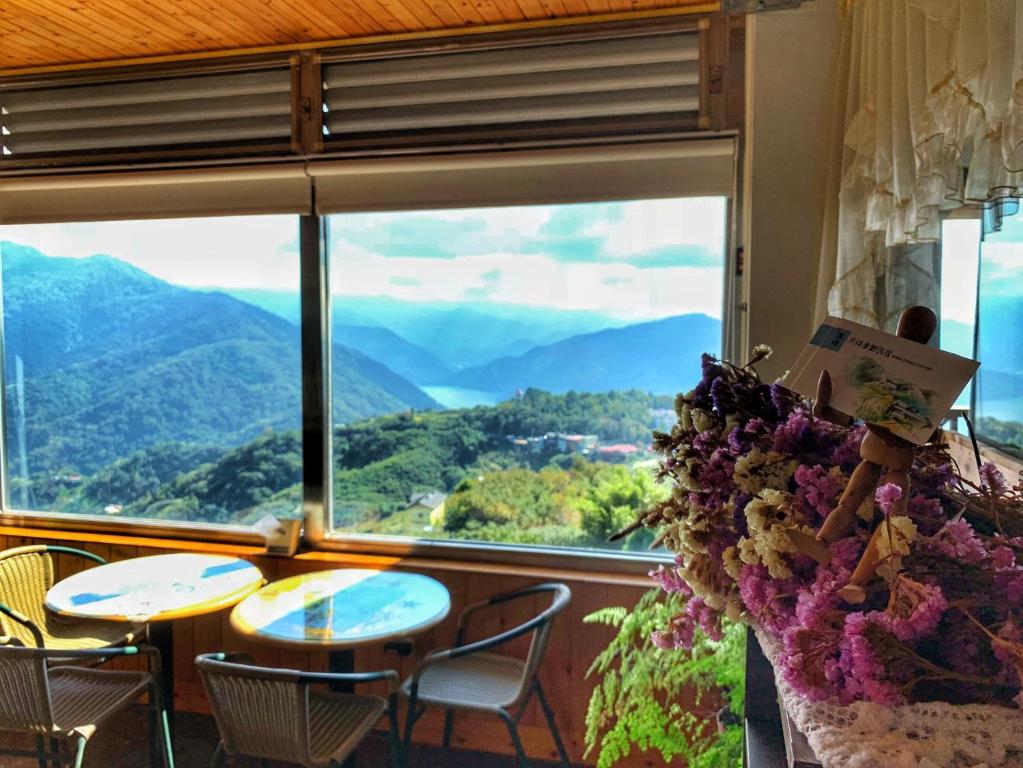 服務人員很貼心看我們剛爬完合歡山手上拿很多午餐微波食品還問我們要不要在加熱,進房很舒服還會聞到淡淡的木頭香氣,會讓人整個更放鬆,房內還會小貼心的準備小餅乾👍👍床罩也有淡淡的陽光曬太陽過的舒服感而不是像ㄧ般民宿或飯店用烘衣機烘乾的味道☺️☺️唯一小小缺點就是我們住的哪間房剛好窗戶有面對到馬路會有ㄧ點點會吵,用餐空間很寬大 還可以看著山與湖悠閑的慢慢享用早餐讓人就覺得很幸福,民宿還會很體心的準備土雞蛋給用餐的房客食用(很好吃)