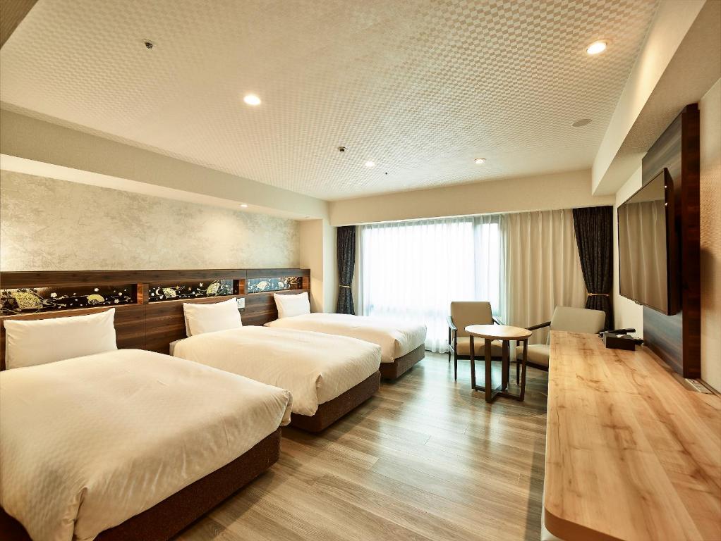 因為訂購3間房,必須分開checkin,但飯店人員從大門就開始引導協助入住登記,省下許多摸索的時間。 地點就在京都車站八條口附近,雖然對於搭乘JR或是地下鐵的旅客比較不方便,但也還不算太過麻煩。飯店樓下就有7-11,飯店內部甚至就有門通往7-11,只需要拿房卡刷過就可以出入,安全滿分。飯店周遭也有許多百貨可以逛,也是很方便。 房間內部整潔乾淨明亮,隔音效果也做得蠻好的。衛浴稍微小了一點,但不太是問題。房間內部空間很大,兩件大的行李箱都能敞開,還留有一部份的走道。