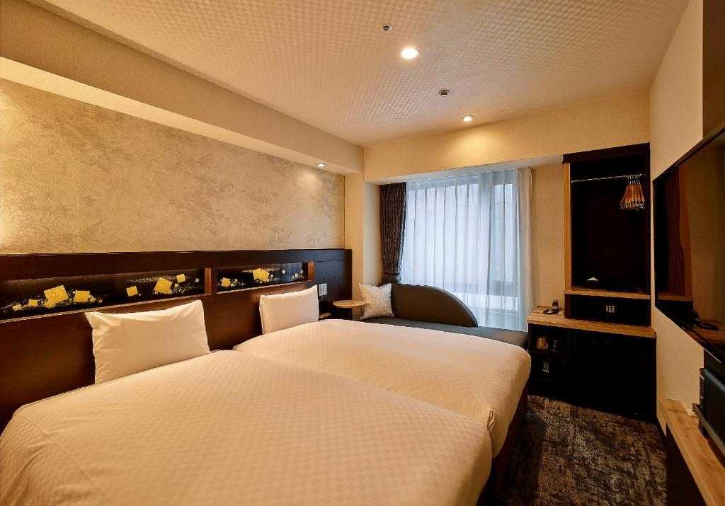 性價比高,房間整潔,兩單人床大。最優的是離京都車站近,離觀光巴士站也很近,如果有參加旅遊網行程,前往集合地點十分便利。此外,一樓大廳可直通7-11,鄰近也有唐吉軻德、中卯等,前往永旺購物商城十分鐘可到,用餐購物均相當不錯。