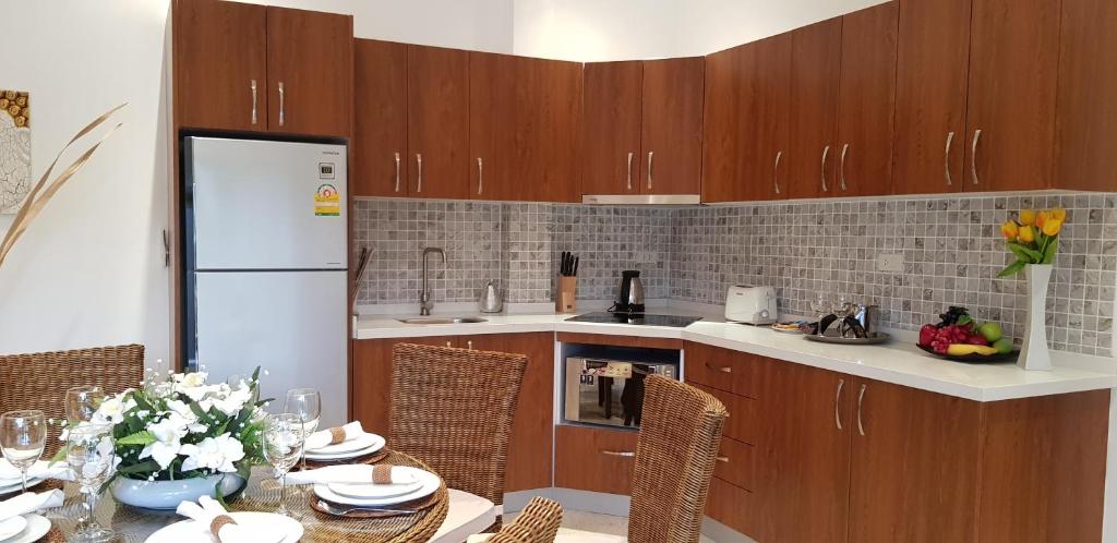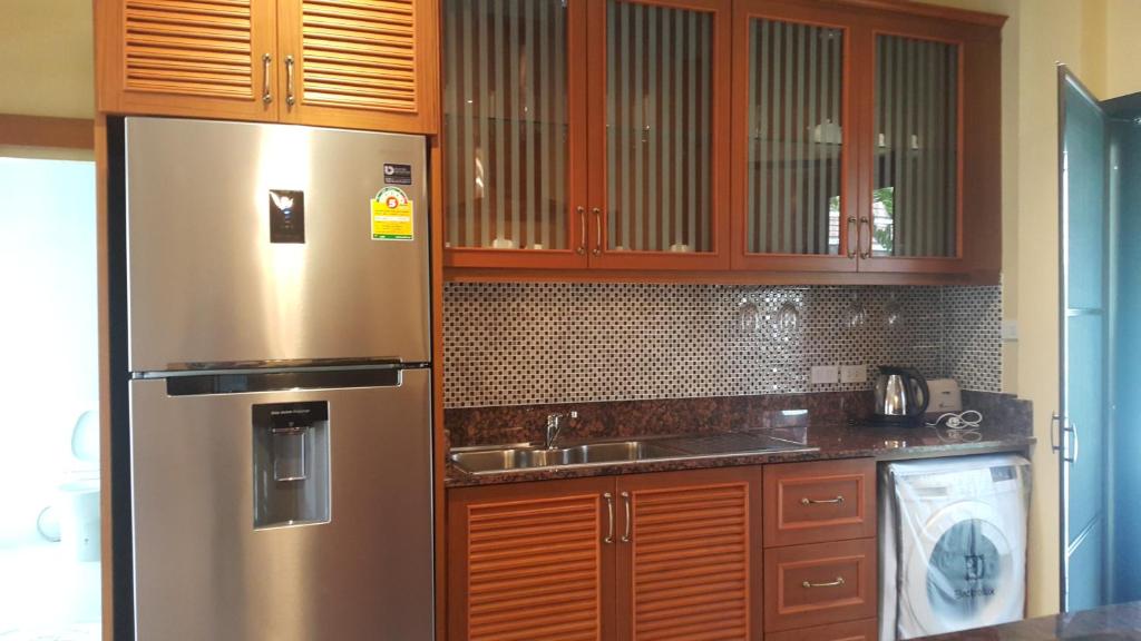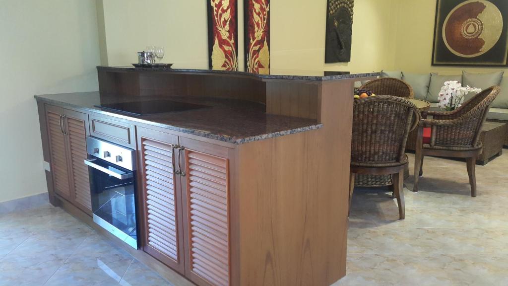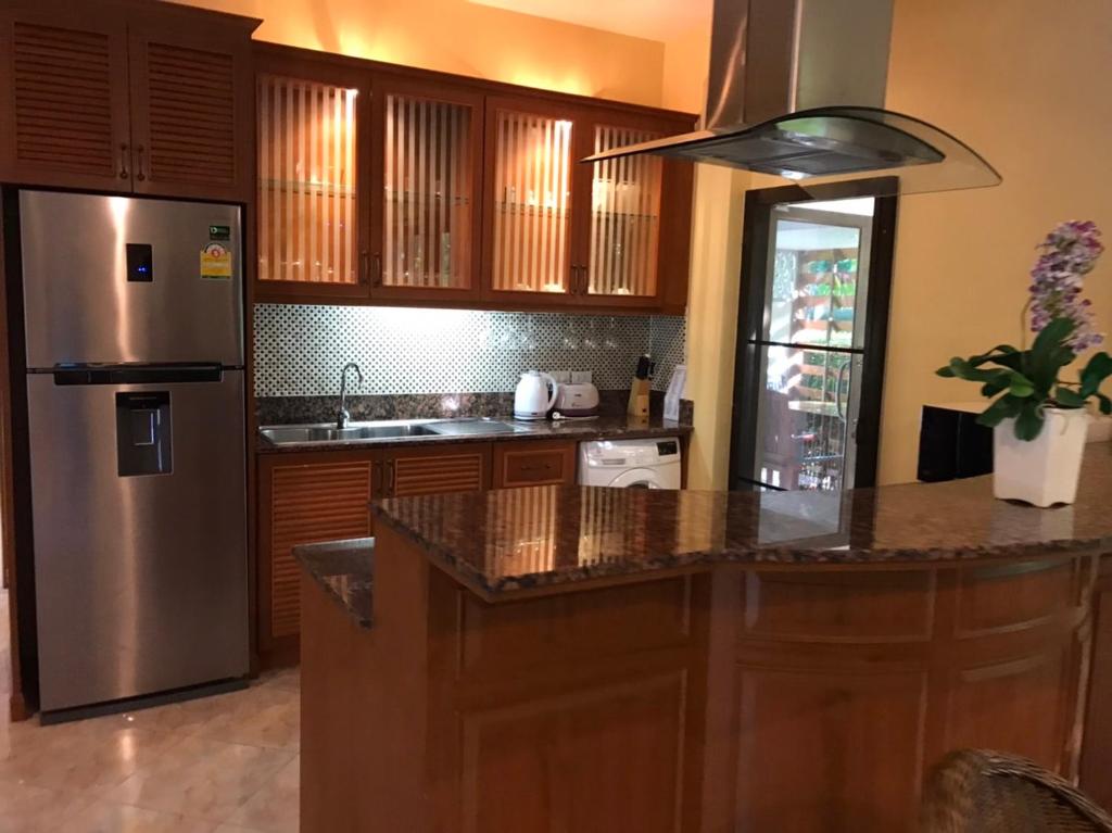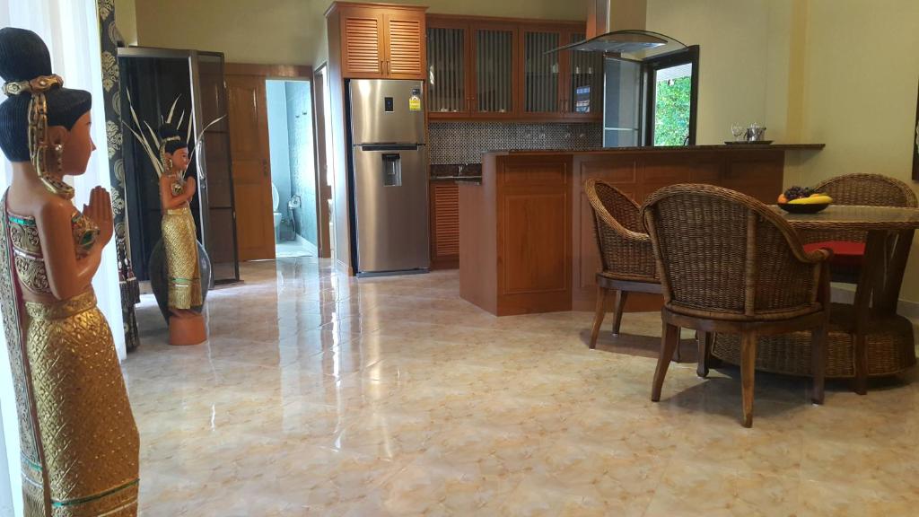 Our private villa is located in a peaceful resort, a short walk to the beach. The villa is well-decorated, furnished, and equipped with all essential facility including European-style kitchen. A big and private swimming will give you and your family a full of joy and relax. We had a great time here and will come back obviously. P.S. Don't miss to ask for a BBQ grill from the reception. The staff could prepare it for you.
