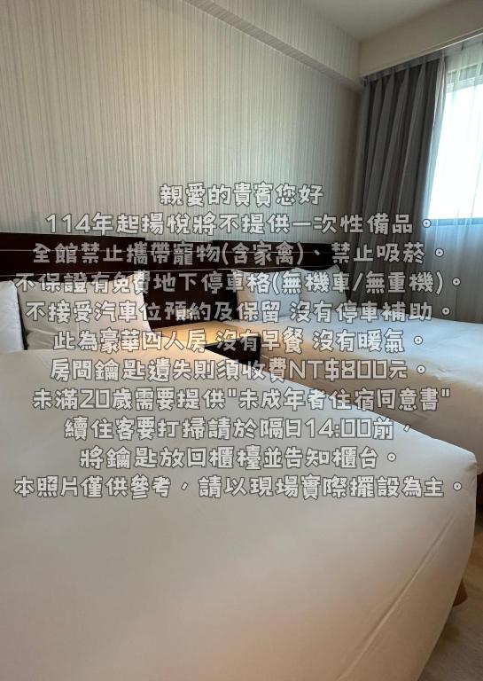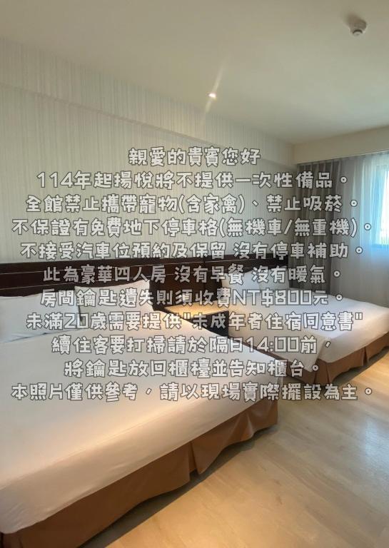 在揚悅精緻大飯店 - 台南館,我們提供多種房型選擇,以滿足不同旅客的需求。我們的豪華雙人房面積達到26平方米,配有一張大床;豪華四人房則有43平方米,配有兩張大床;豪華雙床房面積為33平方米,配有兩張單人床;日式風格房間則是一個非吸煙房間,面積為17平方米,配有兩張單人床;標準客房面積也是17平方米,配有一張大床。